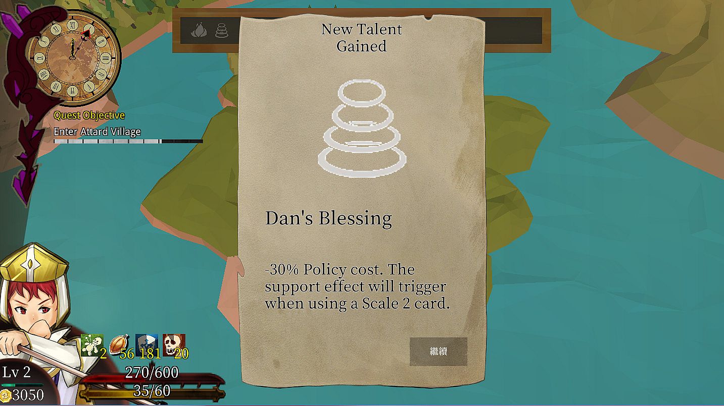 Character talents are randomly generated from a predetermined pool each time Nino sets off on his journey. The player would then be able to choose the most appropriate one to strength Nino. The player must choose Nino’s talents wisely as they each come with their own strengths and weaknesses. One would be able to defeat powerful foes by making good use of these talents; but failing to do that would result in Nino hitting a dead end.There is a total of 108 different talents and 100 different skills in the game, which tests the player’s adaptability. For example, when Nino gains the fire immunity talent, the player should choose to use “self-burn” cards more, which sets both Nino and his enemy on fire, to increase the payoff, since Nino is now immune to fire damage. Another example would be combining the using more water-based attacks after gaining the Electric Shock talent to increase Nino’s damage output.