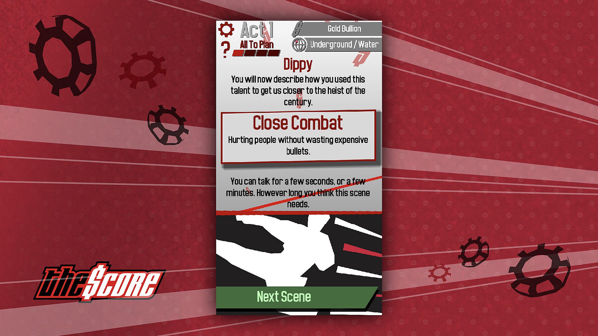 THE SCORE is an all-new kind of collaborative story game that lets you create the world’s greatest heist movie with just 18 cards in under 18 minutes of game time. It’s a revolutionary take on shared storytelling that needs no GM, no complex rules, no hefty rulebooks and gives you all the idea prompts you need to be the mastermind. We launched the card game it with crowdfunding in 2023 and in 2024 took it around the world. Now it's time to hack the system and go digital.Â