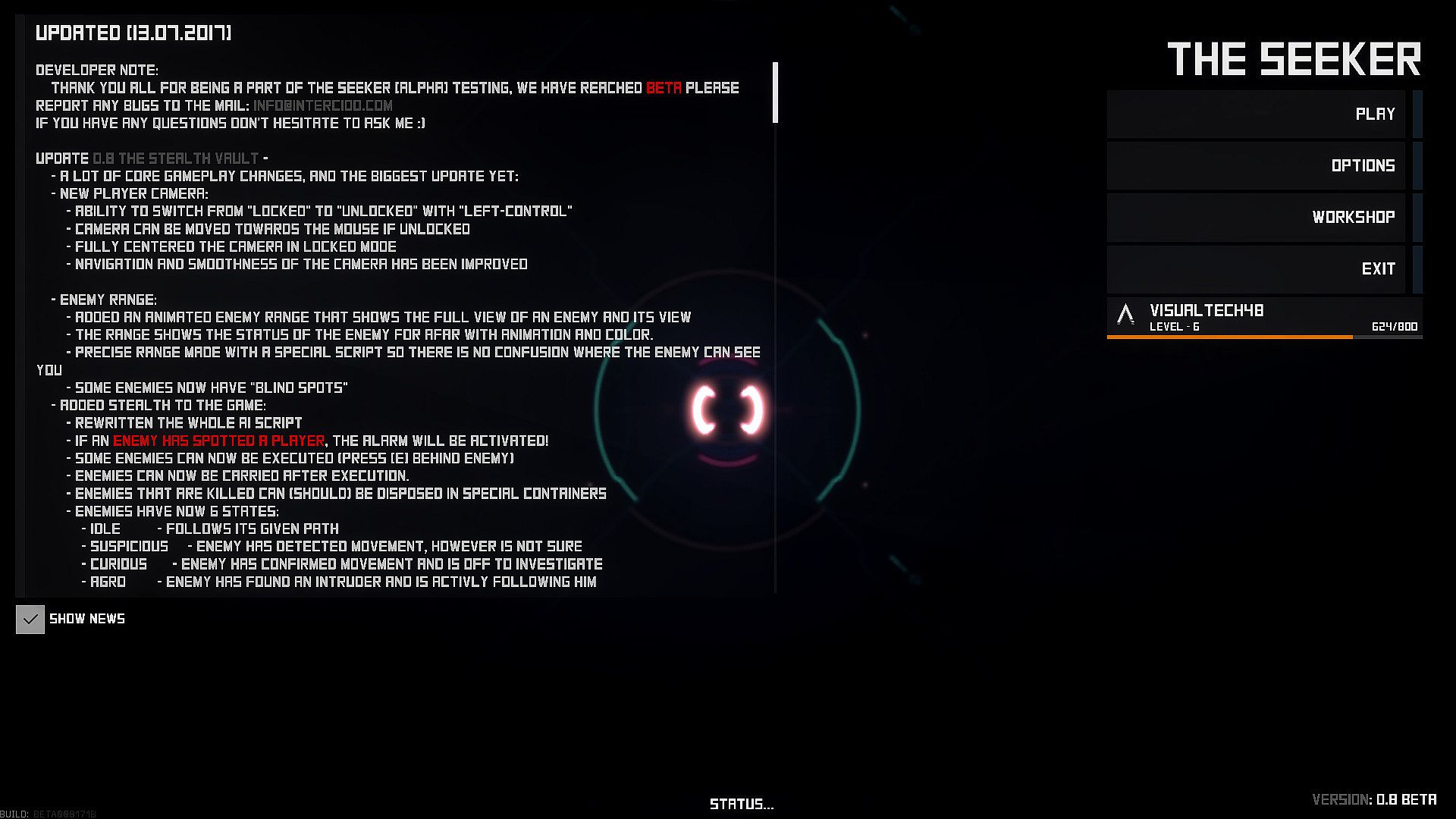 The Seeker is an action/stealth game, where you are in the role of the little drone that was accidentally activated by the debris that hit the EPC-221.It all began after the Great Galactic war when people had to leave earth, however instead of living peacefully, they destroyed themselves to ashes by their greed for power.