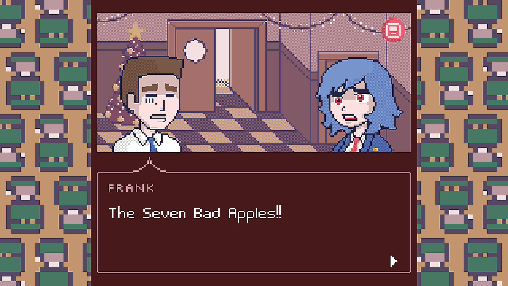 The Seven Bad Apples is a mystery story with pixel art graphics that emulate the style of classic Japanese text-based adventure games. It’s a short side story from the 2021 kinetic novel Murder on the Marine Express, and its unique cast of characters will present players with humorous conversations as they unravel this intriguing mystery set during the Christmas season. This time, the game features an interactive element that requires players to make decisions about Ranko’s actions in order to progress through the case.