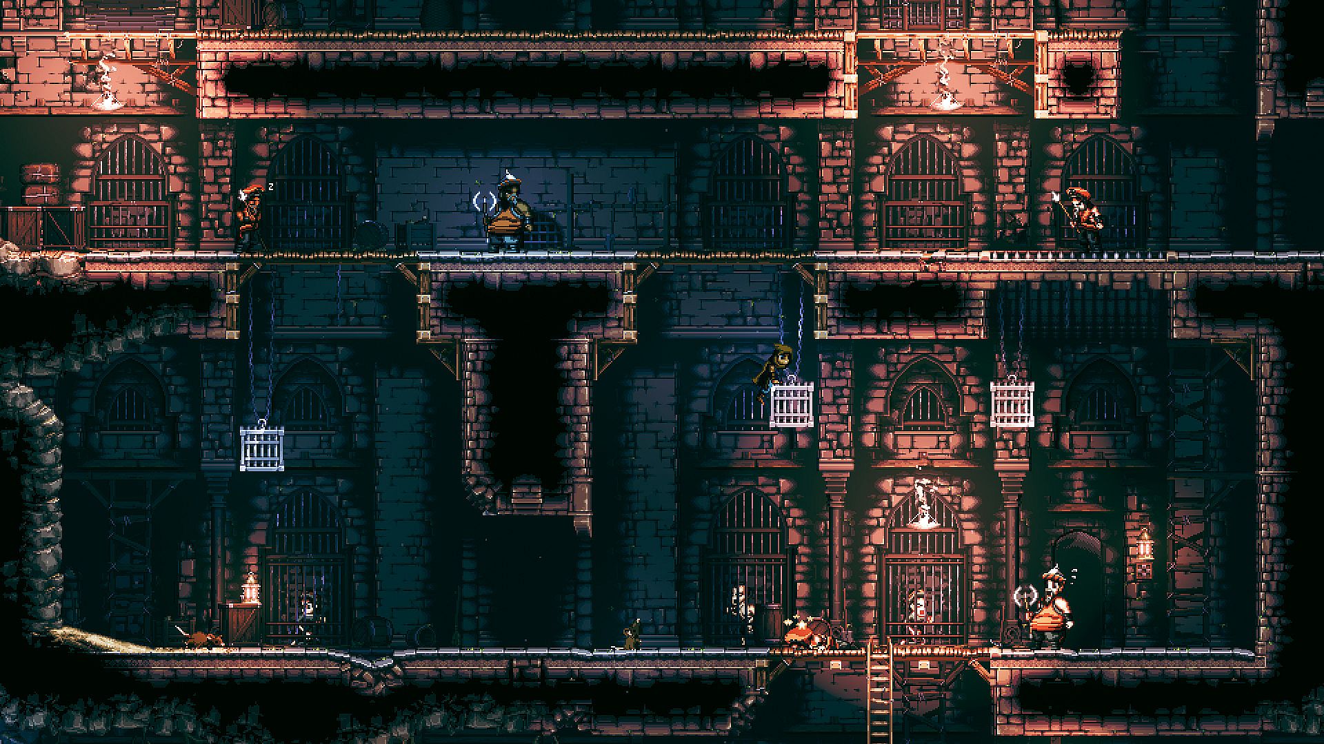 The Siege and the Sandfox is a stealth Metroidvania with one giant continuous world, linking the newer palace above, older prisons below, the ancient mausoleum, and an intricate network of caves woven amongst them all. Encounter unique enemies in each area - some more capable at pursuing sneaky Sandfoxes than others! Keep on your guard, as even an extinguished torch or door left open can trigger the suspicions of those out to get you.