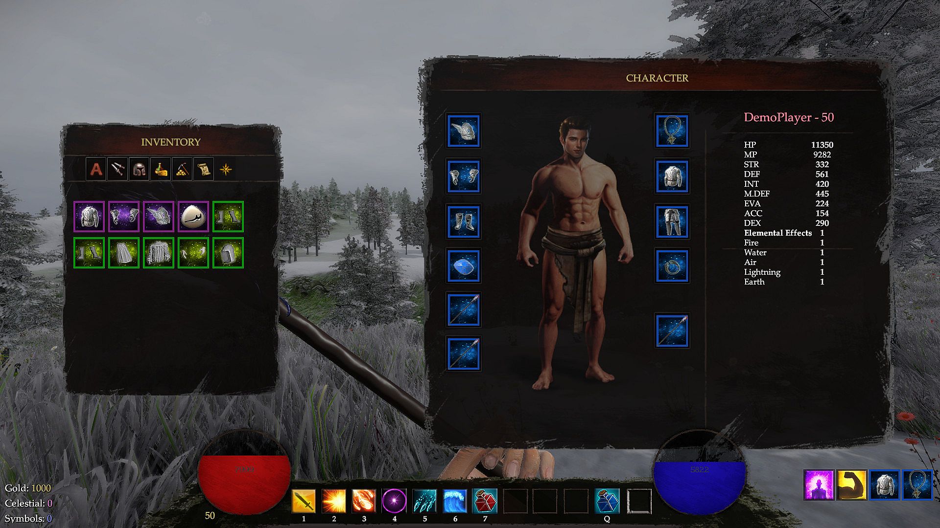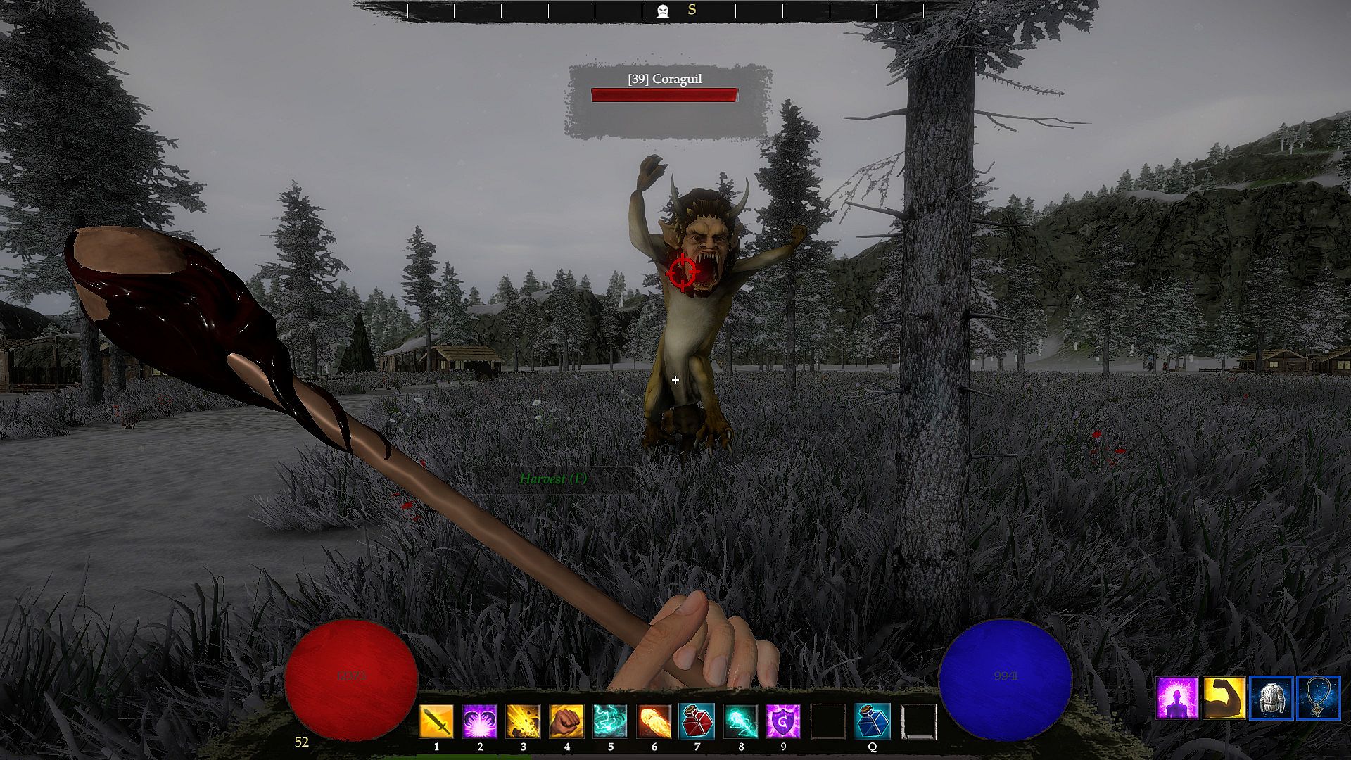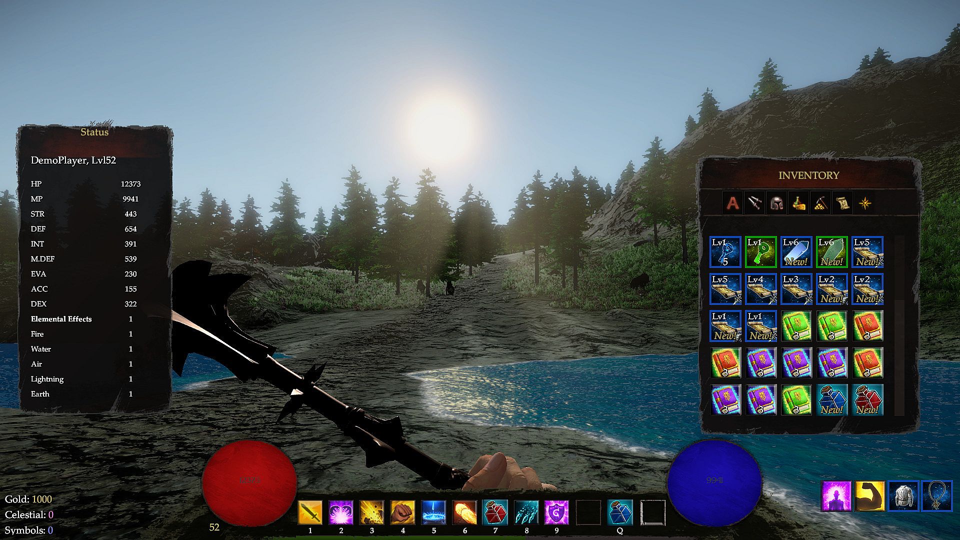 In those 64km2 of open land, you will never be bored. Forests, mountains, volcanos, lakes, and rivers, surrounded by fearless monsters that will hunt you down. Fully dynamic weather with seasons, teleports for fast travel, arenas for boss fighting, portals for mysterious dungeons and many quests. Discover villages and castles. Staying on the right areas and entering the matching for you level dungeons & arenas is a wise strategy to strengthen and prepare adequately. You are free to go wherever you go, but if you step foot in the wrong area no one but your weapon can save you.
