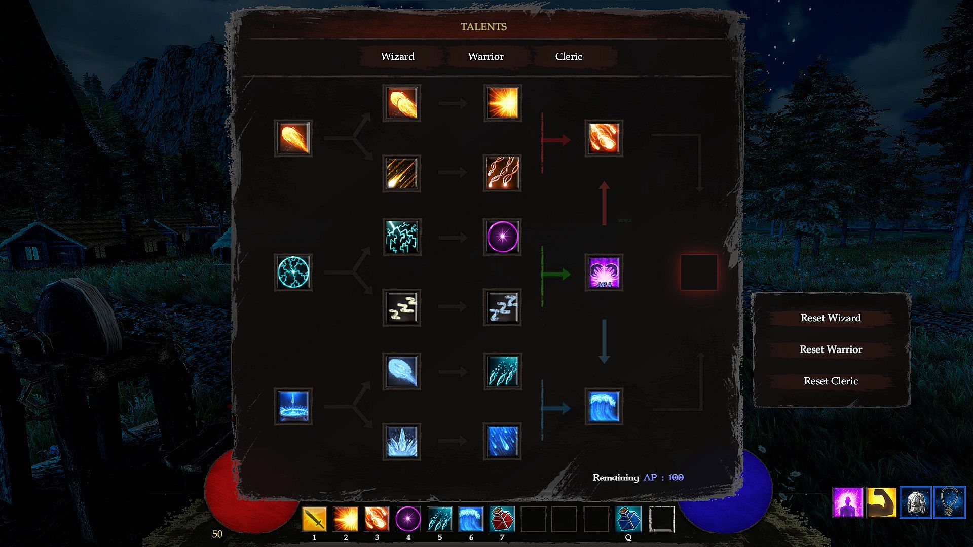 Those three categories of abilities were selected to include the necessary level of diversity in terms of gaming styles, allowing each player to build countless combinations of skills. The Wizard tree is focused on magical spells, Warrior tree on physical abilities, and the Cleric tree on healing abilities. At the moment, each tree will feature 33 abilities, and many more will be added.