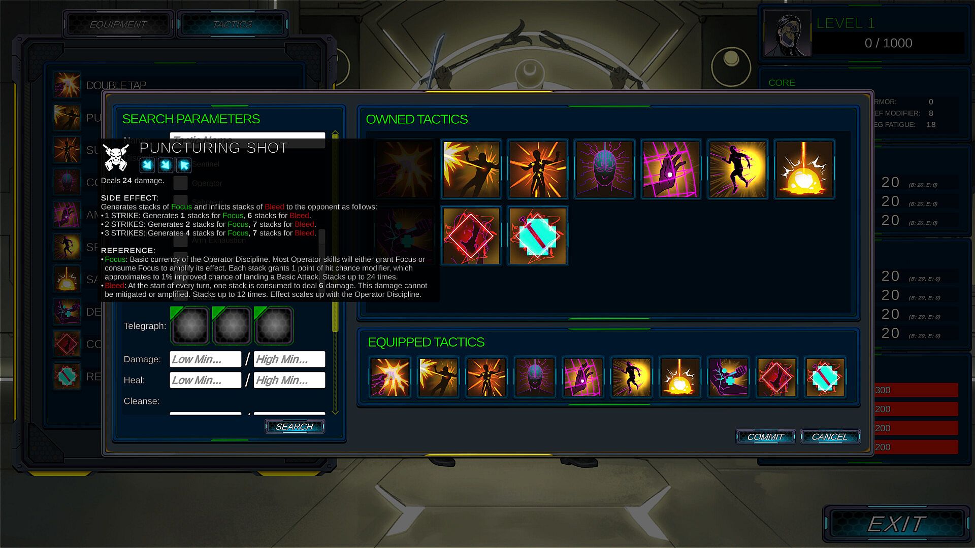 Engage in turn-based combat where you can combine 6 basic attacks into combos, counters, and feints.