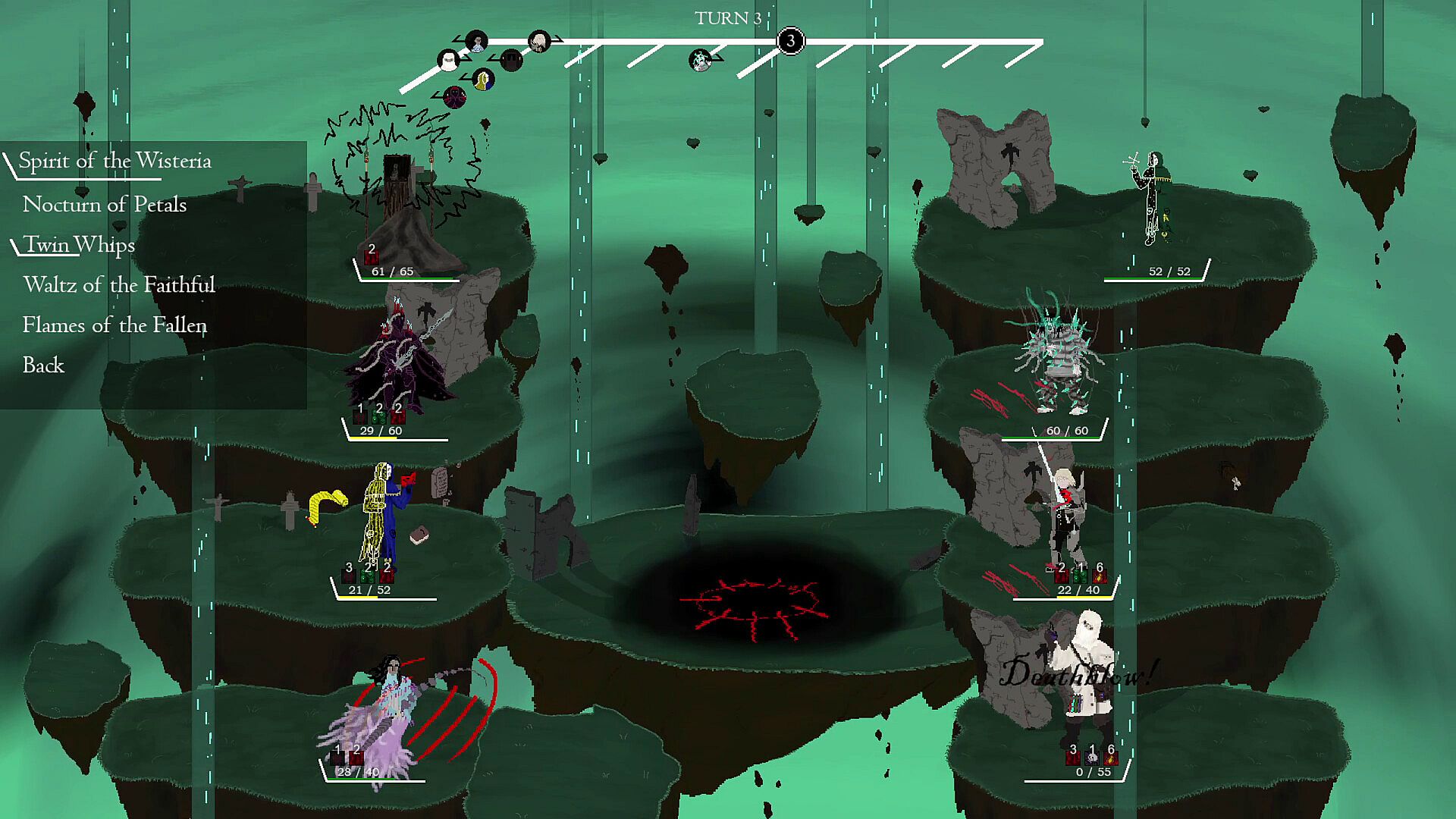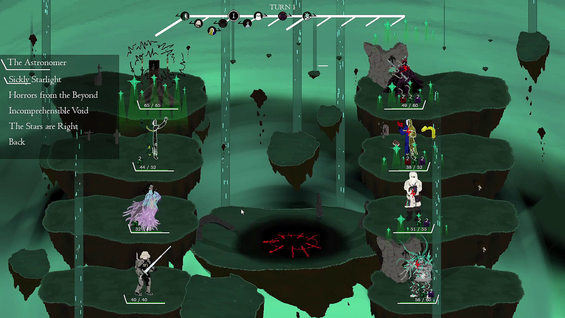 The world burns as the stars align and a profane ritual is drawing the power of the cosmos. Contract four characters of varying intent to combat your opponent's party of denizens and heroes to seize the ritual for yourself!