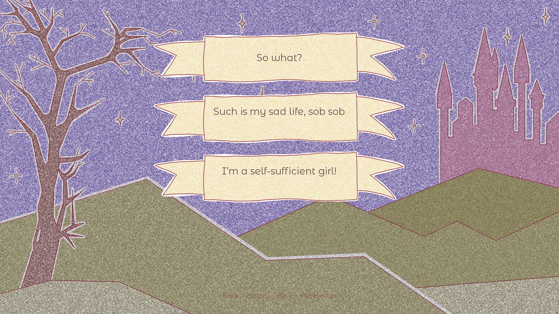 This is a visual novel full of sharp jokes, bold choices, and fairy tale tropes turned upside down. Sass, sarcasm, and maybe a little romance — if you survive the dragon-sized drama.
