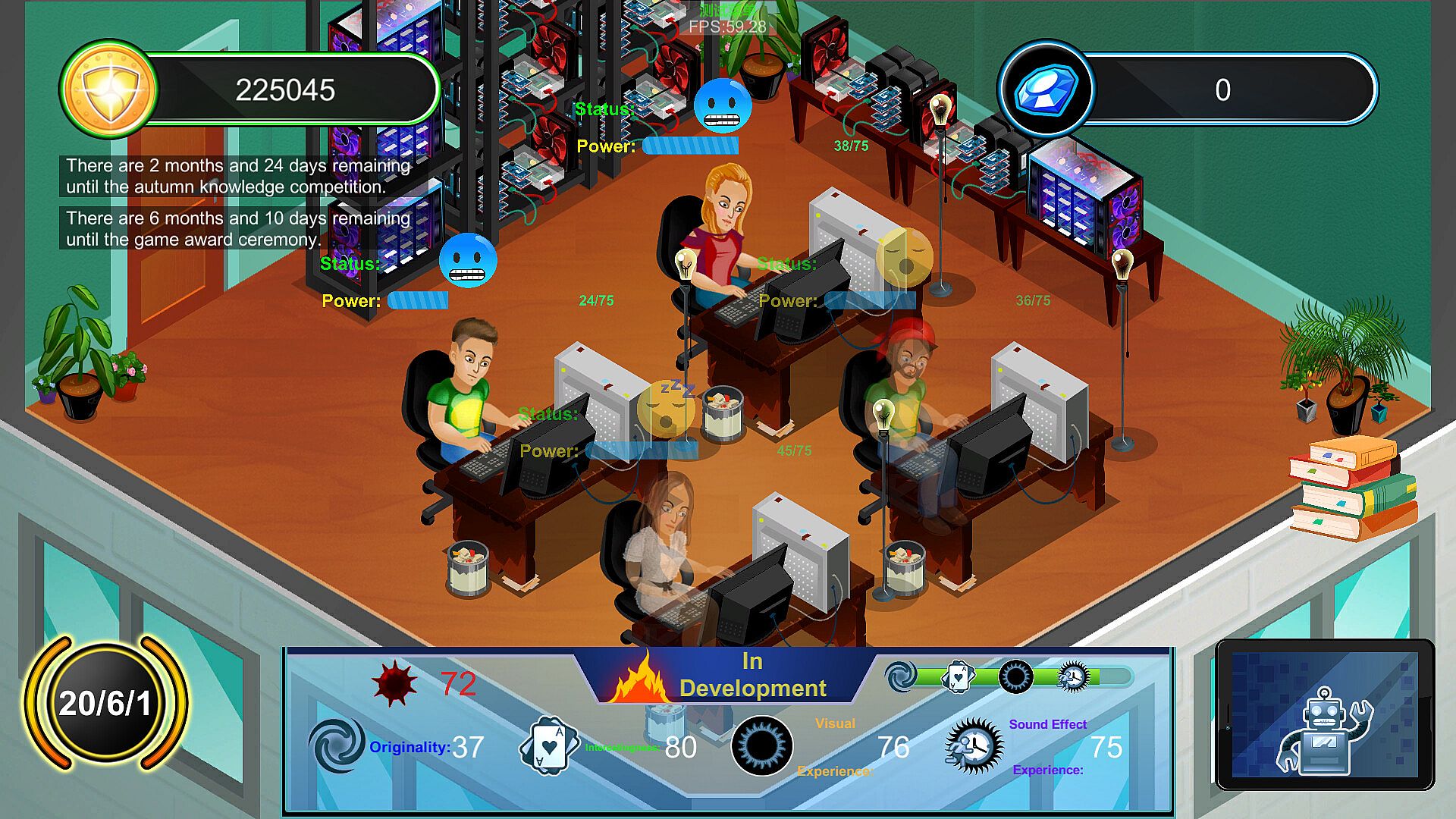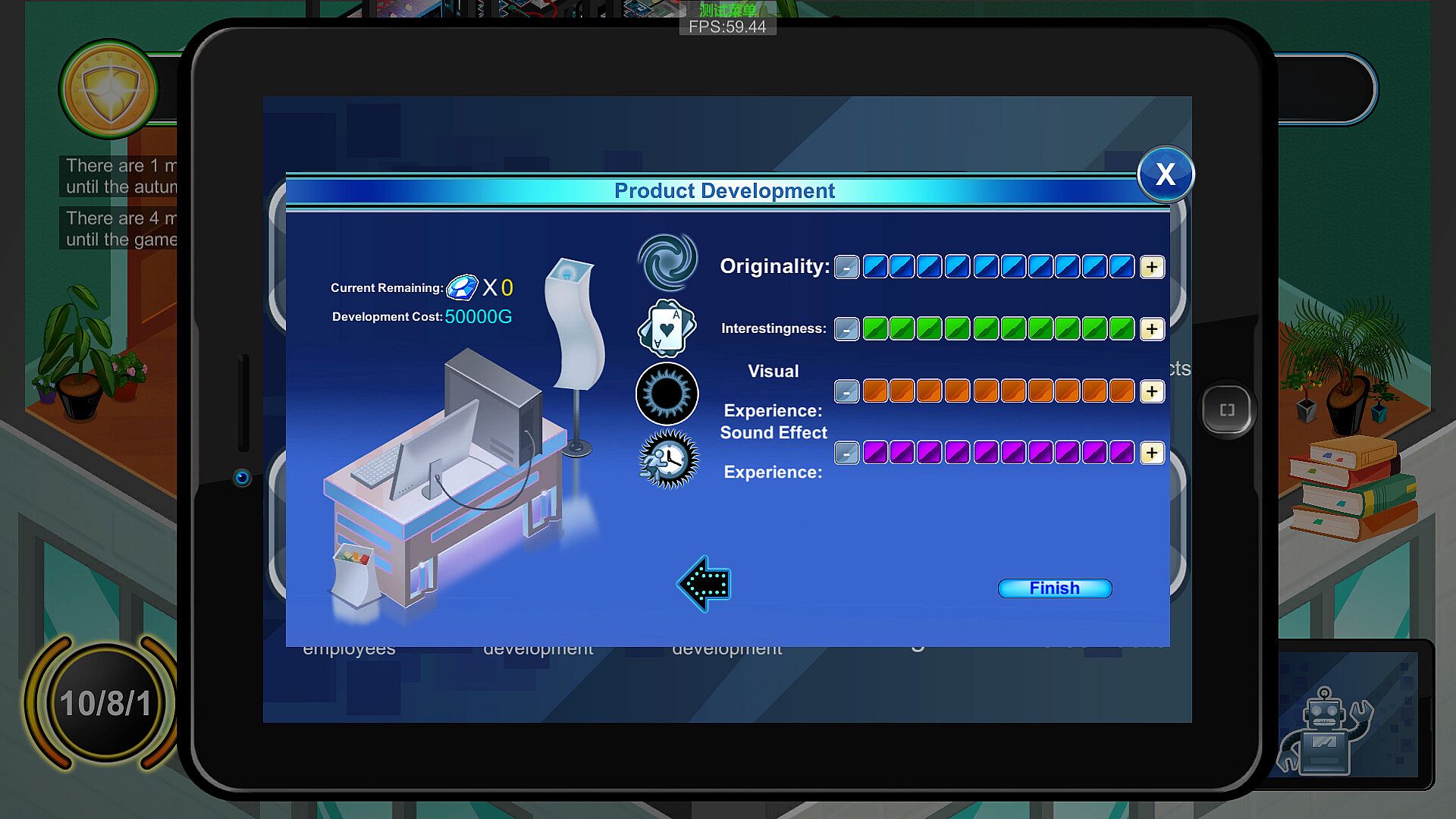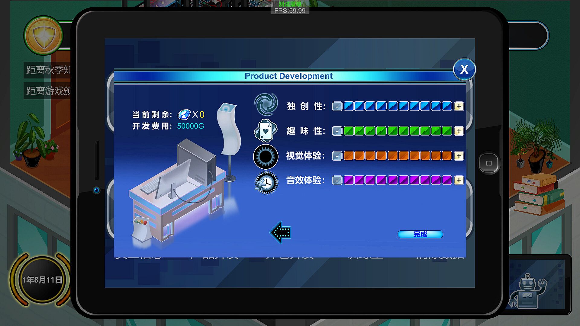 Are you filled with boundless curiosity about game development? Do you like running a game company? Do you want to witness the birth of each of your works? Do you want to learn more knowledge that you've never heard before, such as history, astronomy, life, humanities, geography... Then come on, create your own game company and become the brightest star of this era. In the game, you will run a company, and your main source of income mainly comes from product development and outsourcing development. The influencing factors of product development mainly include the various attributes of the employees, the publicity platform, and the number of diamonds used. Early outsourcing development is a good choice, and the income is usually not very high, but the advantage is that the development cycle is shorter. If you start your own product development stage, you can obtain information through market research to maximize your income. In addition, there are four knowledge competitions throughout the year, held in spring, summer, autumn, and winter. Based on the answering situation, you can obtain income. Winning at the annual award ceremony can also get a bonus. Diamonds are obtained mainly through the performance of employees during development or certain random events. The training room can enhance or reduce the attributes of employees through the completion of mini-games. For employees, you can recruit them in the talent market. You need to pay wages monthly. In the employee information, you can dismiss employees, but you need to pay a fee. If you don't pay wages for three consecutive months, the company may go bankrupt. In addition, some small game details will be described in the encyclopedia.
