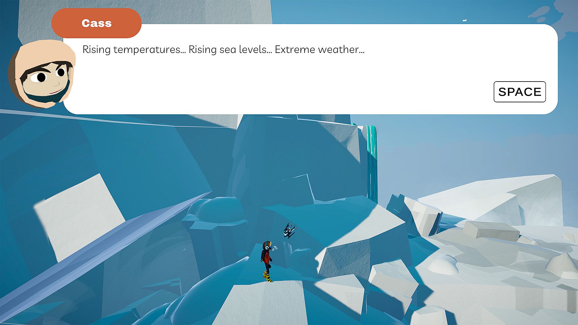 You play as Cass, an arctic climate researcher. You must get off the ice sheet before it collapses. On your way, you will gather and analyze data about the ice.