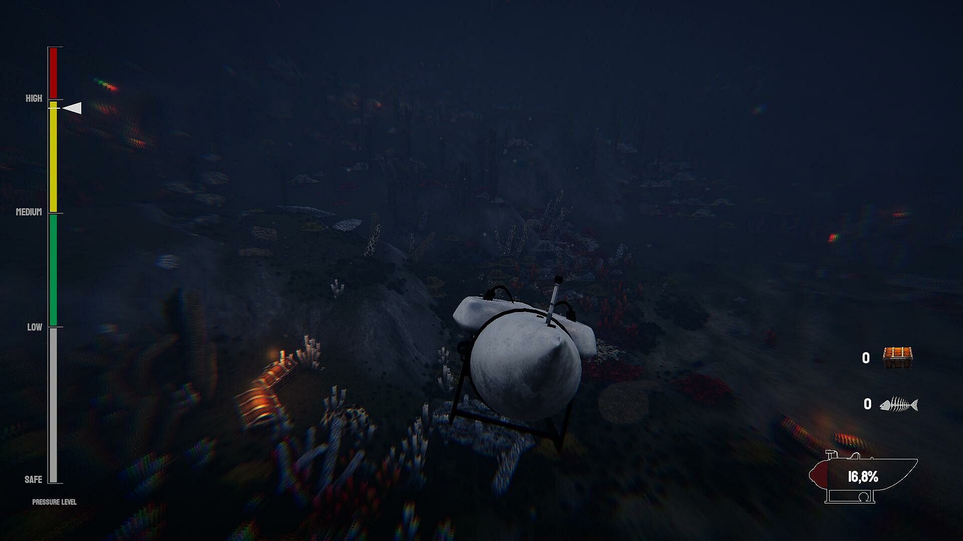 The deeper you dive, the more your vessel will be tested. The ocean's immense pressure can crush even the most well-built machines. As you venture into waters more than 4,000 meters deep, you’ll need to monitor your submarine’s structural integrity. Keep an eye on cracks and weak spots, and perform repairs on the fly. Upgrades are crucial — a more resilient submarine will increase your chances of survival, but be mindful: every repair costs resources. Can you balance the risks and rewards of diving into the abyss?