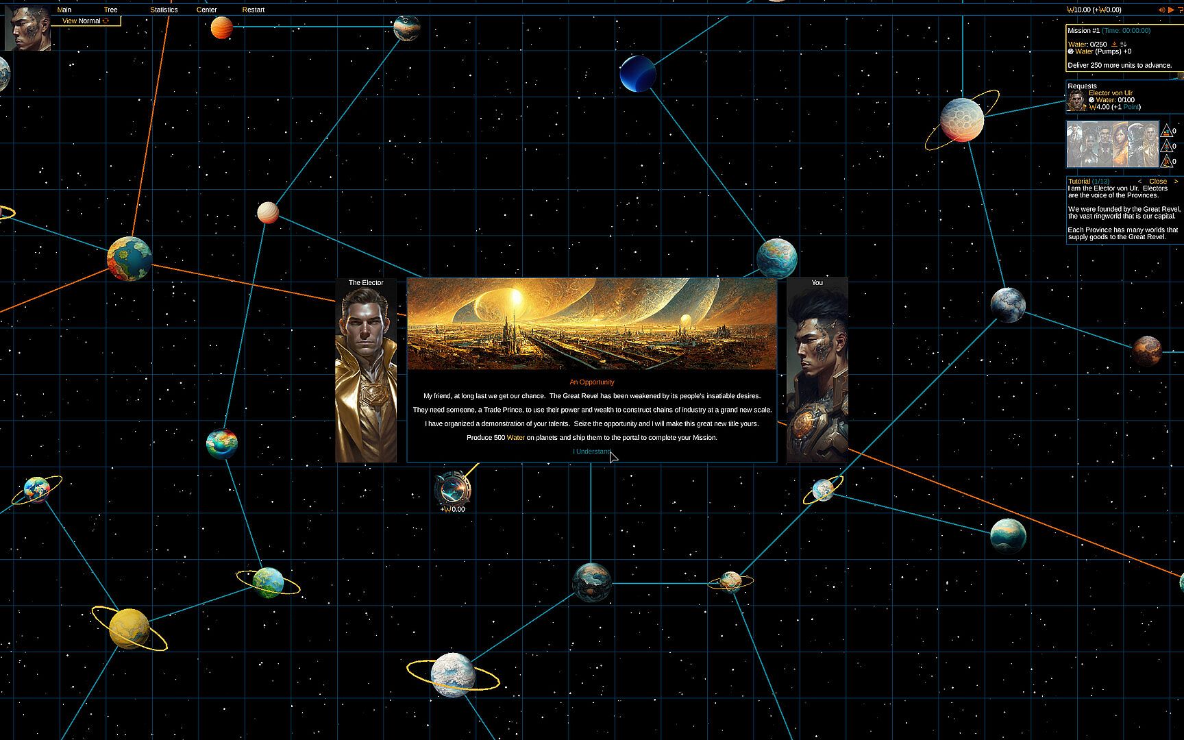 As the Trade Prince, you have been appointed to bring wealth to the Provinces and fulfill desires of the Great Revel by building industry at a new, grander scale. At first, you will supply simple goods. But in time, you will build networks of spaceports and factories across dozens of planets to produce the advanced goods needed to satisfy each Mission.