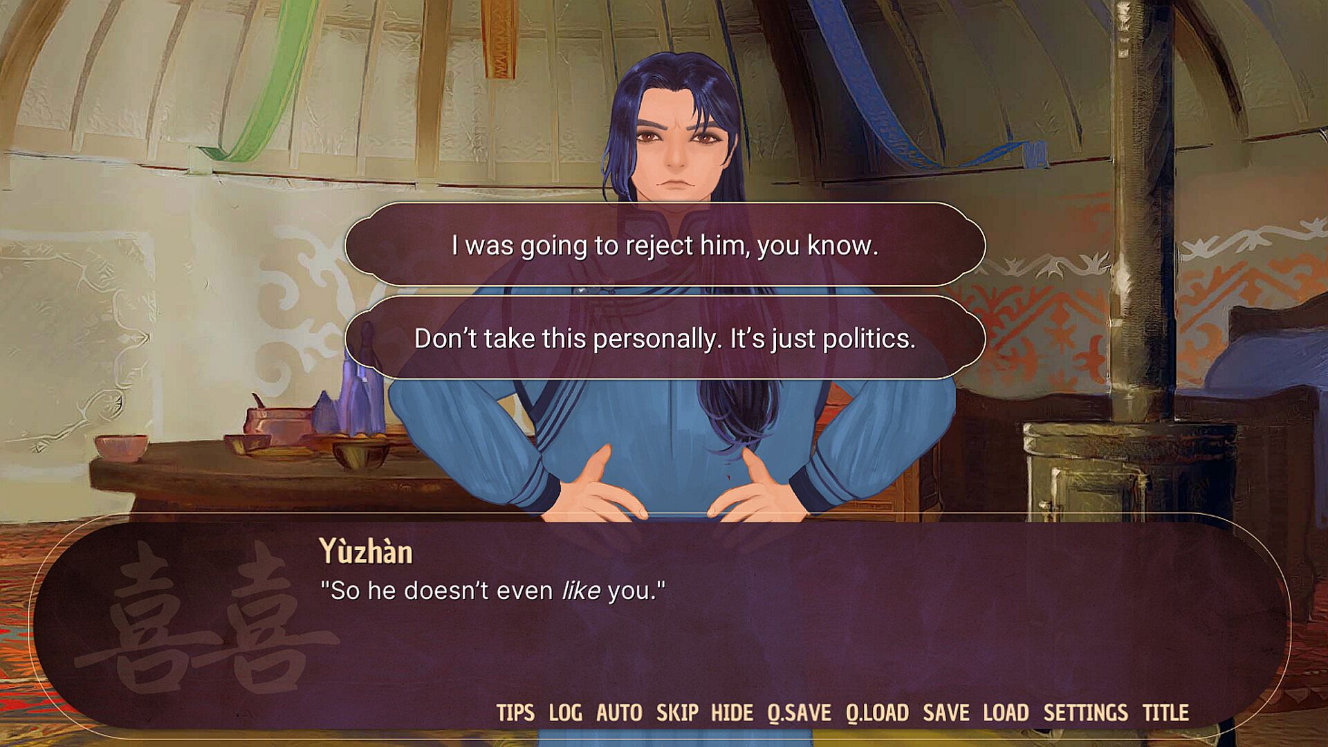 You're the chief of several semi-nomadic clans; he's an imperial prince of the Han people, with whom you have a complicated political relationship. You meet for the first time on the same day you marry, and you quickly find that he isn't the arrogant, prideful prince you'd expected.