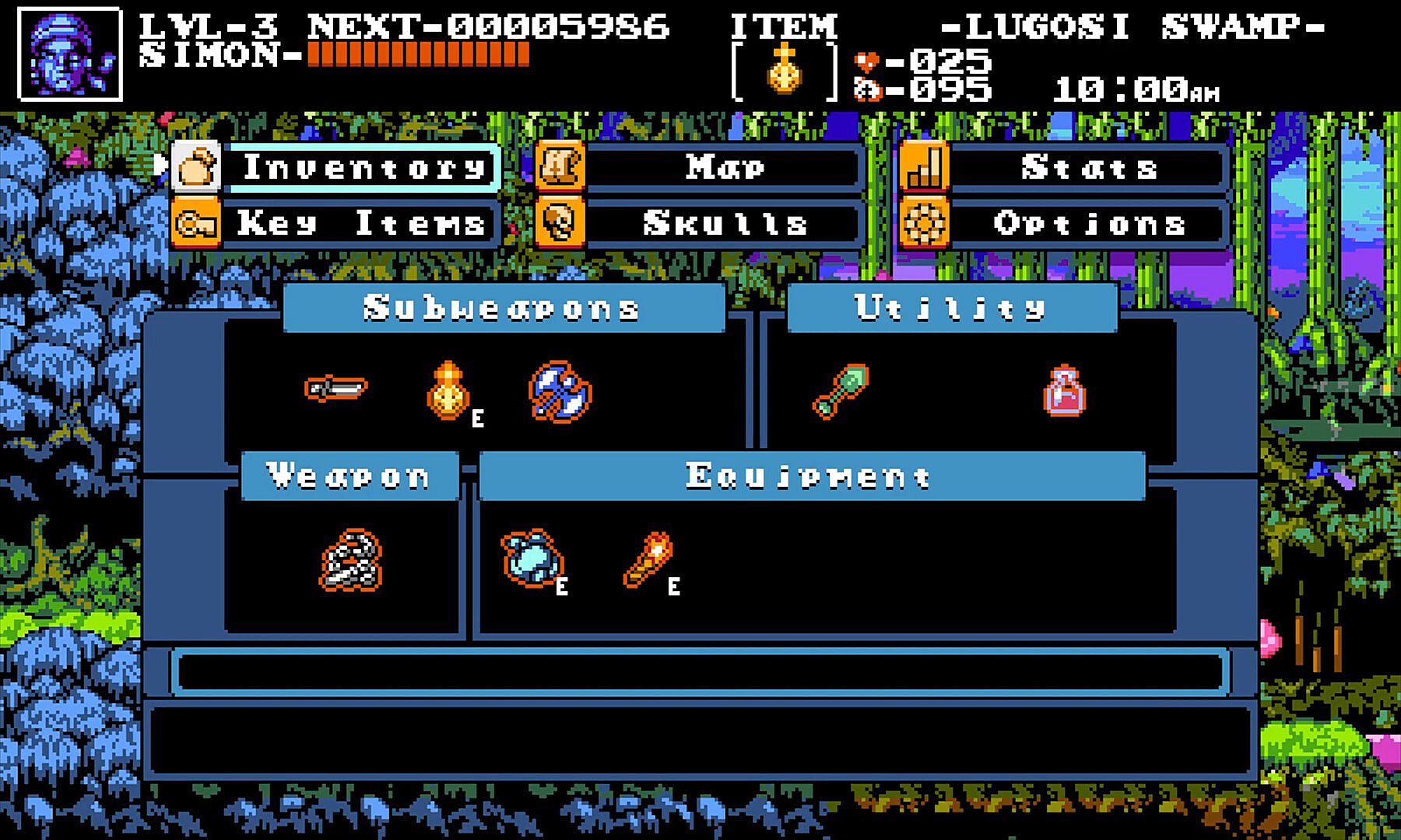 The Transylvania Adventure of Simon Quest is a parody/homage side-scrolling platformer that immerses players in an ominous 8-bit world. The titular hero named Simon Quest has just arrived in Transylvania only to discover his vampire hunting rival has already slain the evil Count Dracula. In order to reclaim the glory that should be his, he journeys across Wallachia to gather what he needs to resurrect the dark count piece by piece and kick his ass himself!