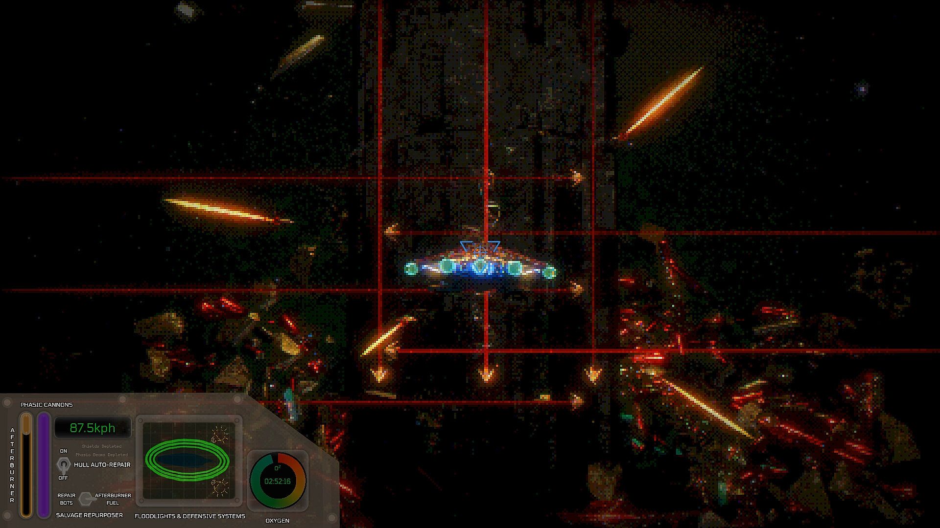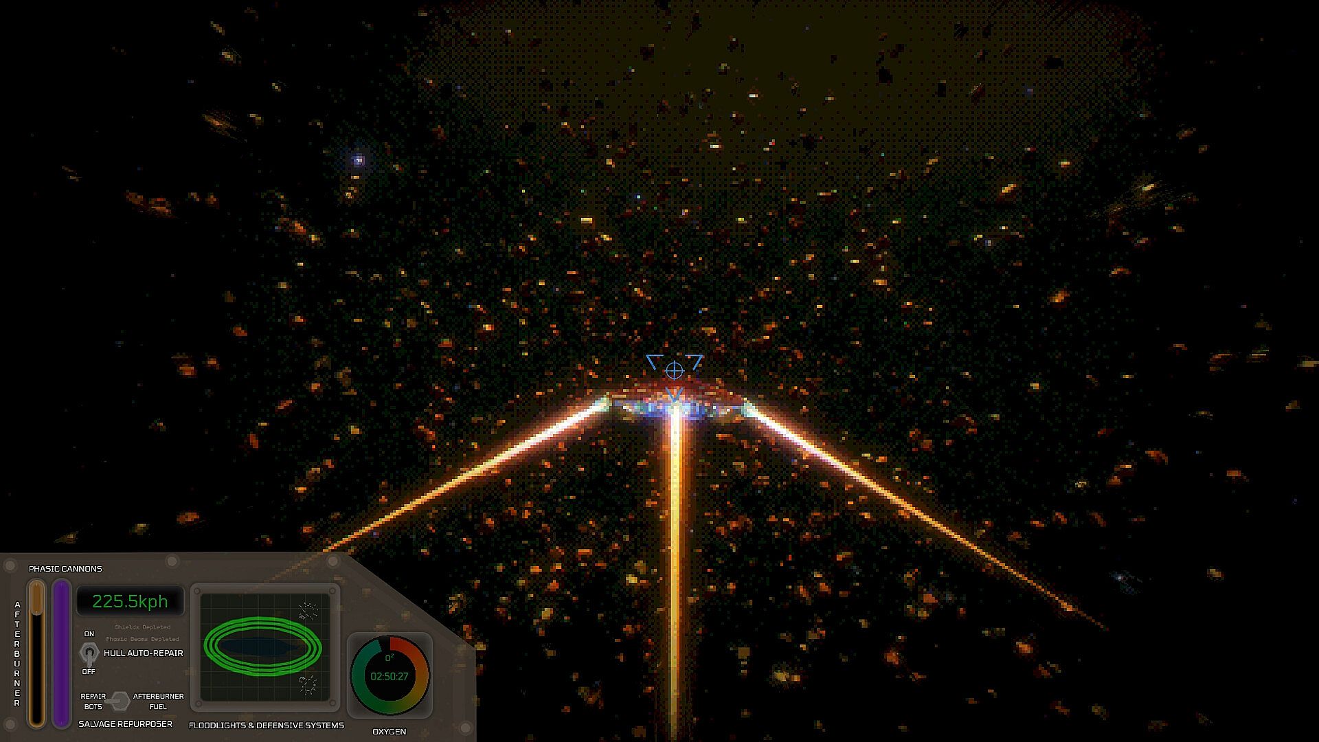 Collect the scrap from destroyed ships to power your own. You must decide what matters to you more: hull repairs or speed.