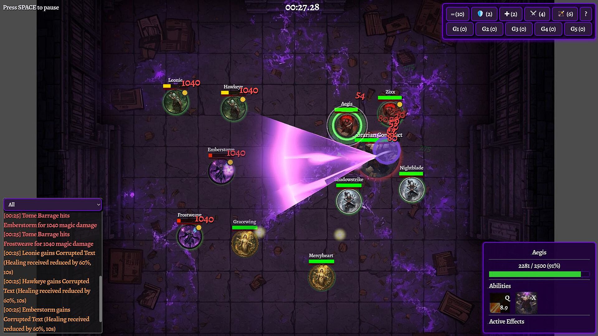 Tabletop-style character tokens let you focus on mechanics, not animations