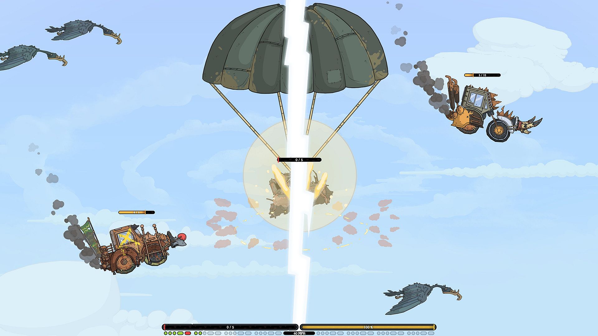 - Obstacles & Weather: Obstacles are designed to hinder you but you can also use them to damage / slow your enemies. The weather influences your speed and acceleration and some spawn dangers (such as lightning bolts, meteor showers, etc.).