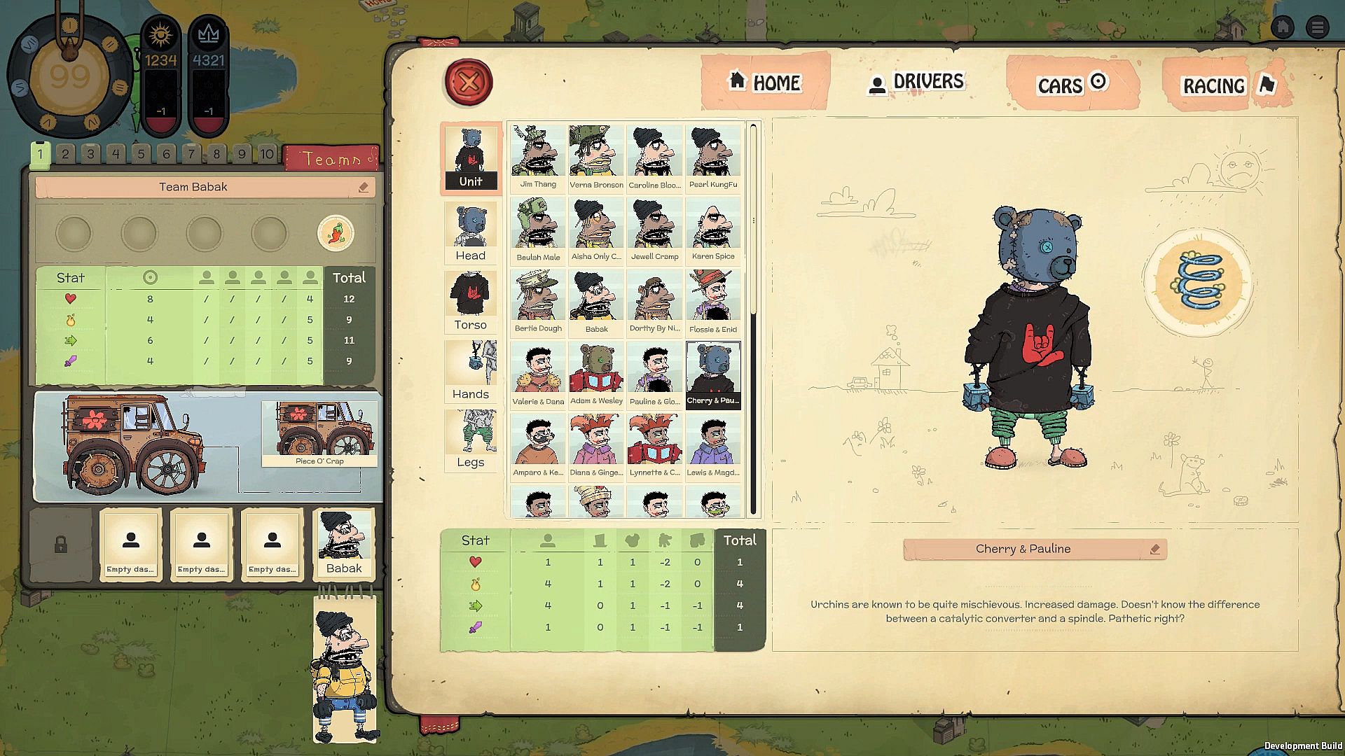 - Team Management: You are able to assemble multiple teams composed of one vehicle and at least one driver. You can match and sort different combinations to surpass specific challenges (such as building a team to survive a meteor shower).