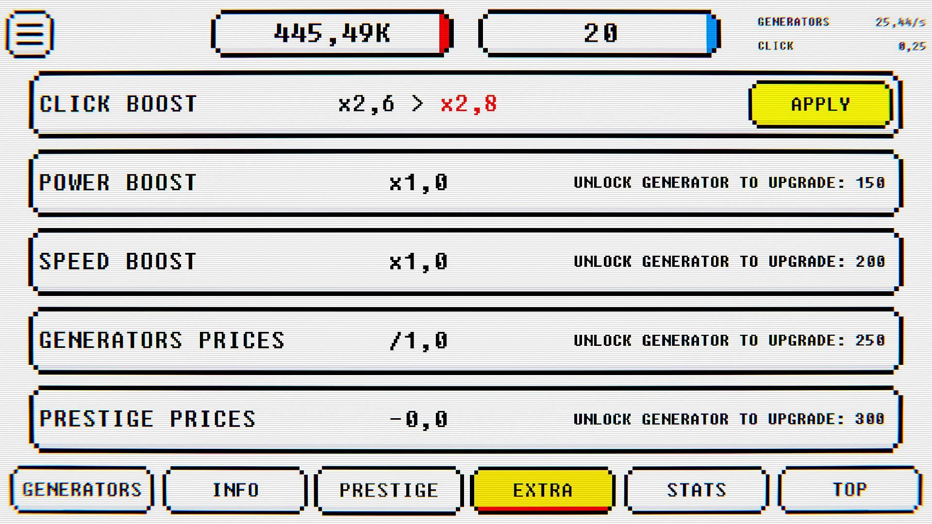 Click click click or just wait for passive incomeSUPER PRESTIGE