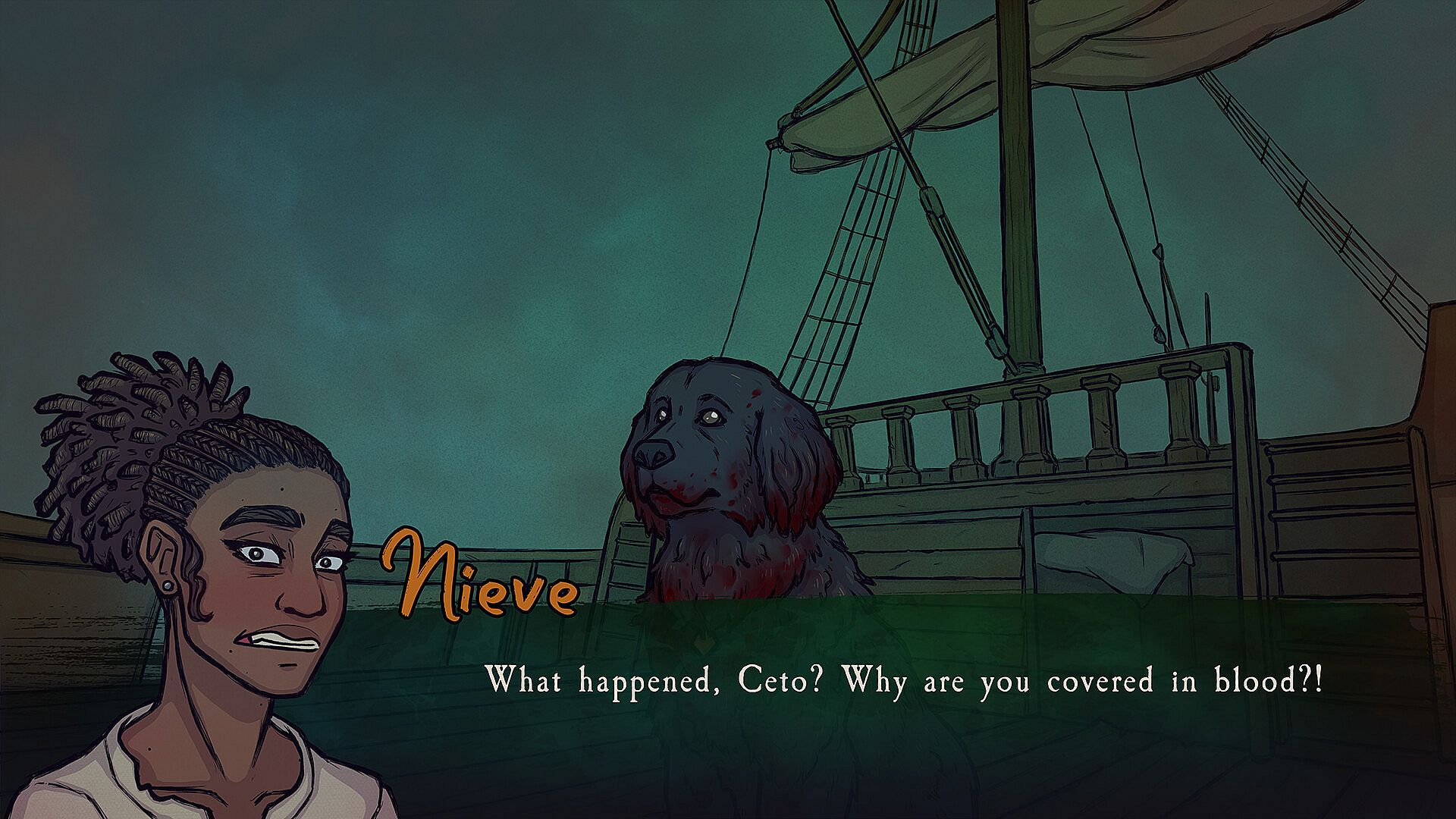 The Witch of the Wake is a seafaring supernatural horror/thriller visual novel inspired by media such as The Thing, The Terror, and Return of the Obra Dinn.