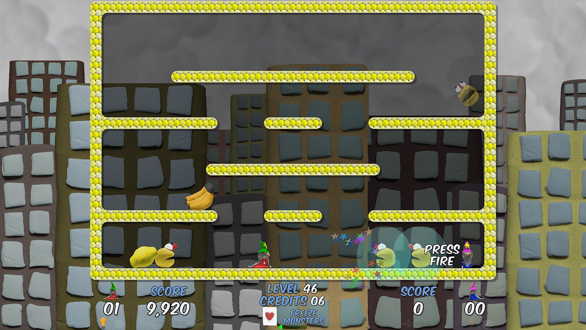 There are special items to give you various power-ups and help you along the way, and lots of tasty food to be eaten to rack up the high scores and extra lives.