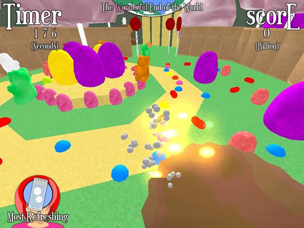 The Wonderful End of the World takes you through 12 unique locations, with over a thousand treasures to gather before the end comes. Steal some sweets from the candy store, where gummi fish swim in a blueberry river; visit a surrealist library to find that the words have literally leapt out of their books; and explore the Megalopolis, where you'll watch a lively end-of-the-world parade and then gobble it up before making your way to grab the tallest skyscraper ever built.