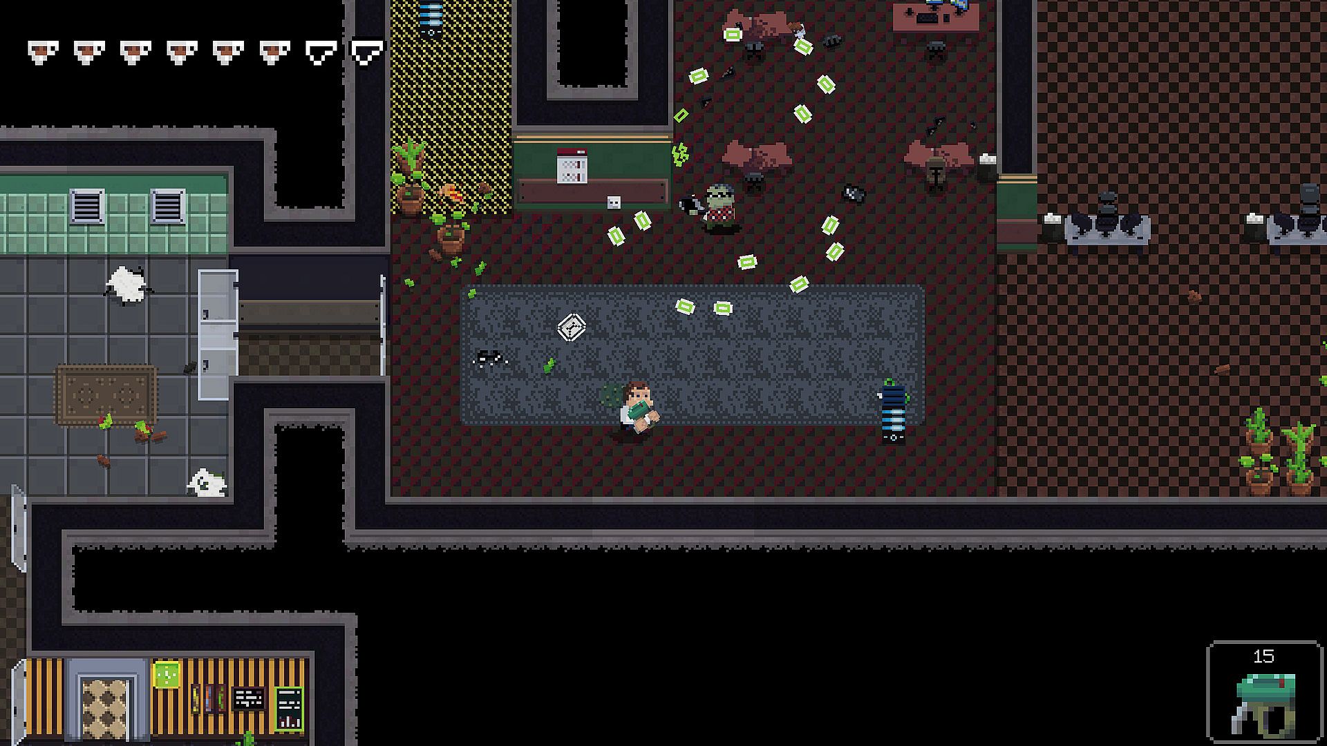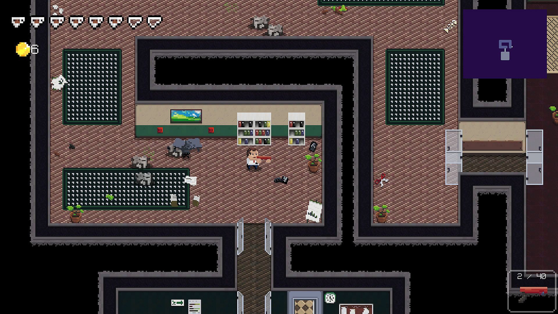 - Diversified levels presenting different zones of the office occupied by evil forces