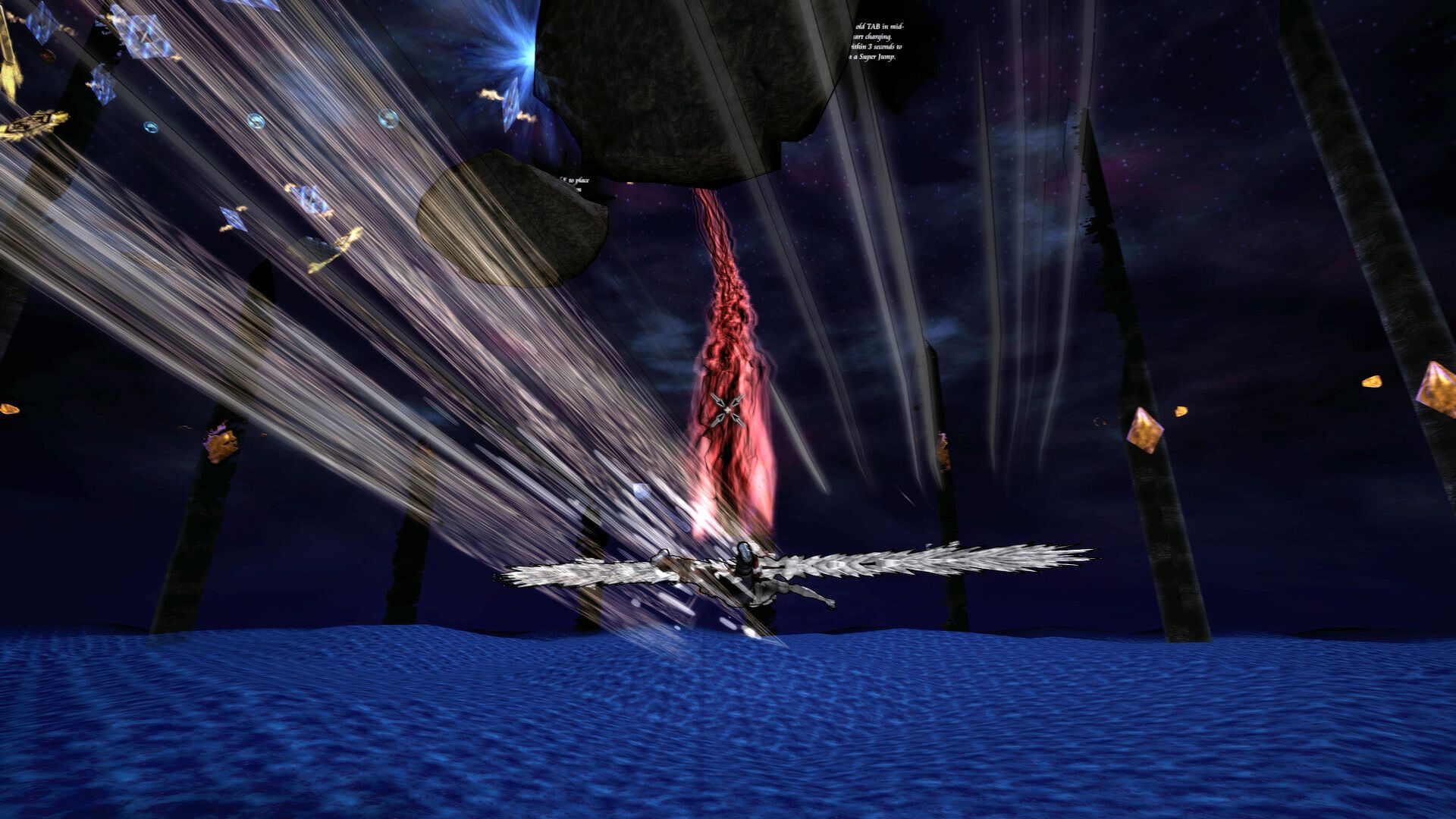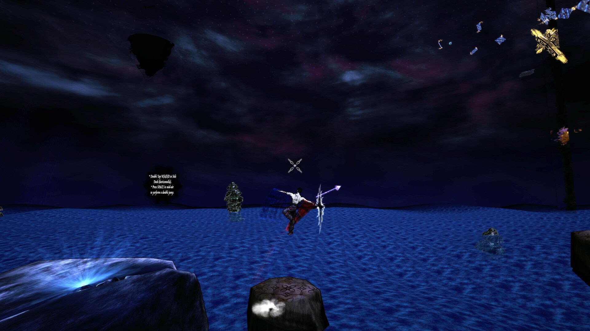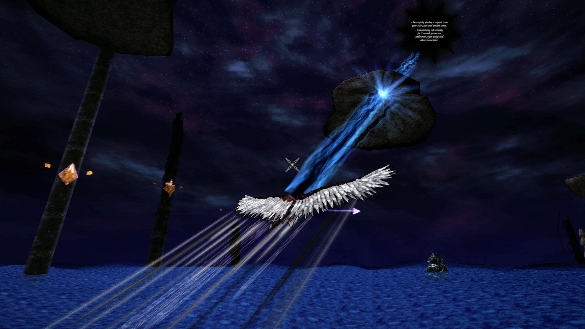 In this game you will have multiple abilities which you can use to advance upward. Your main ability is to place two crystals and pull towards them, however you cannot place them on any surface. You will also be using jumping and dashing to avoid obstacles and advance upward, you will be able