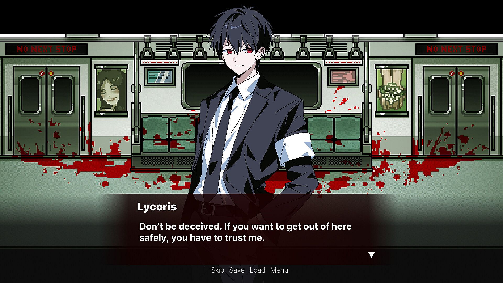 <There Is No Next Stop> is a psychological horror visual novel set aboard an endless subway. Hunted by grotesque entities known as the “GUEST”, your survival depends entirely on the choices you make.