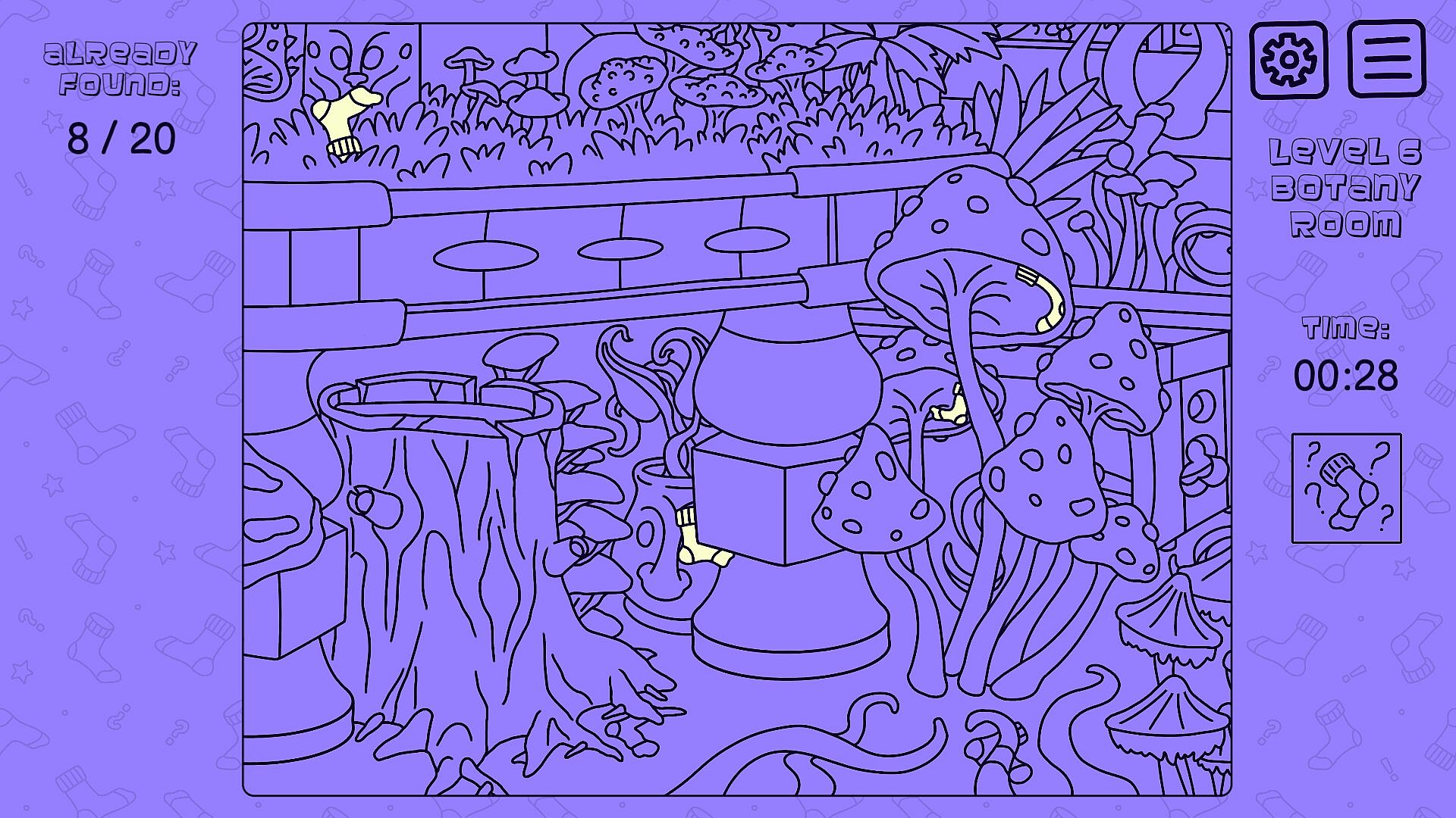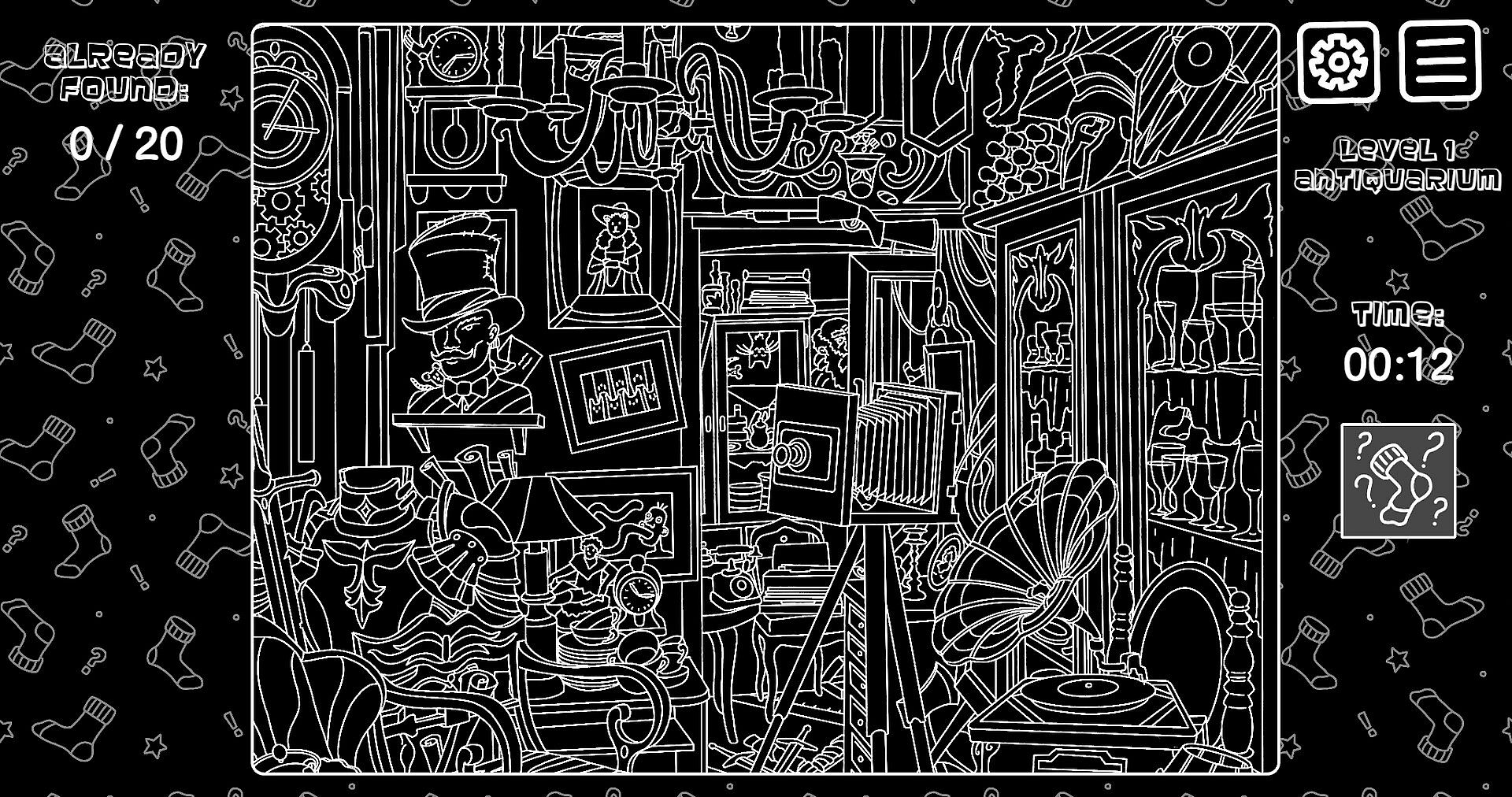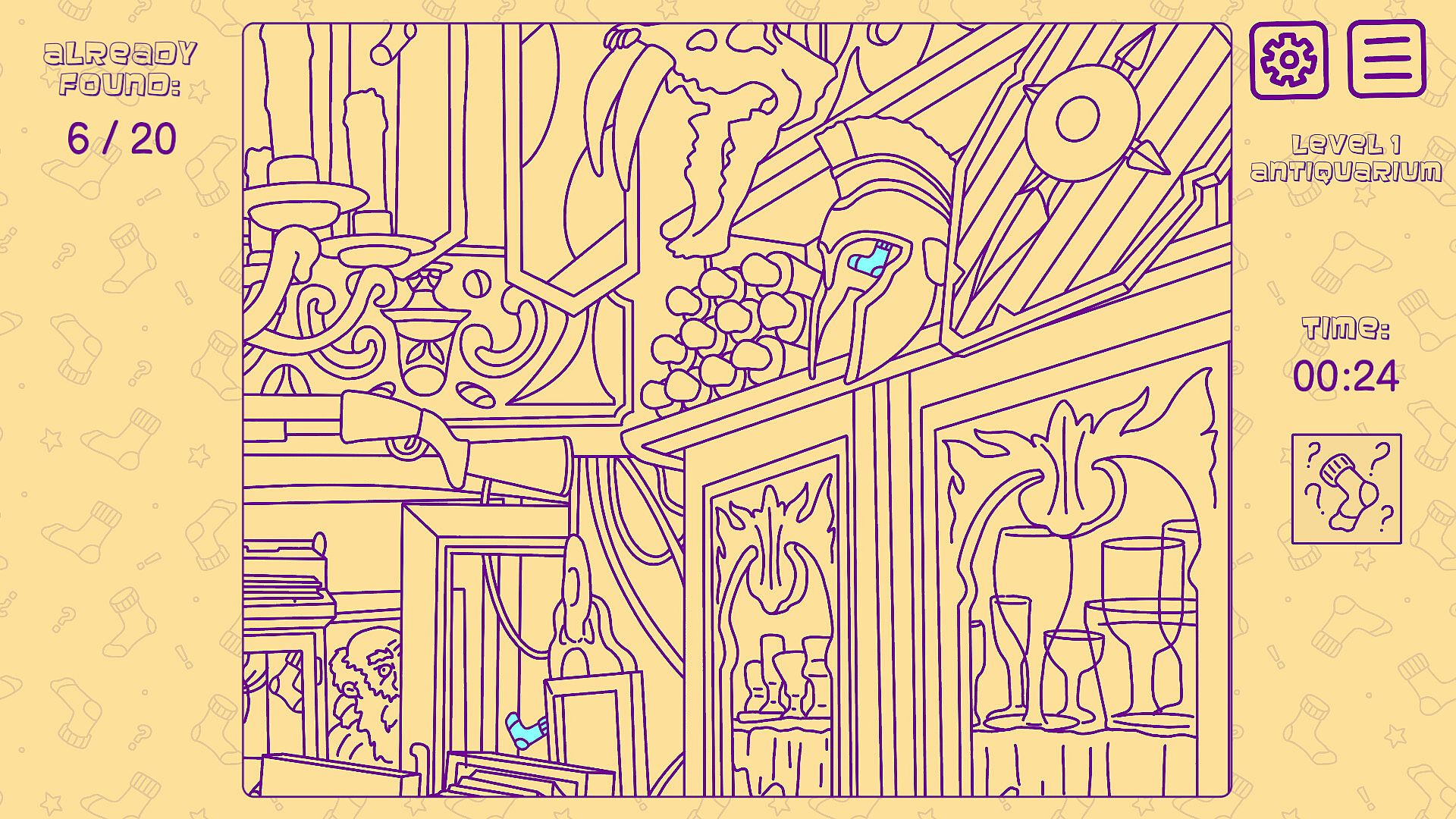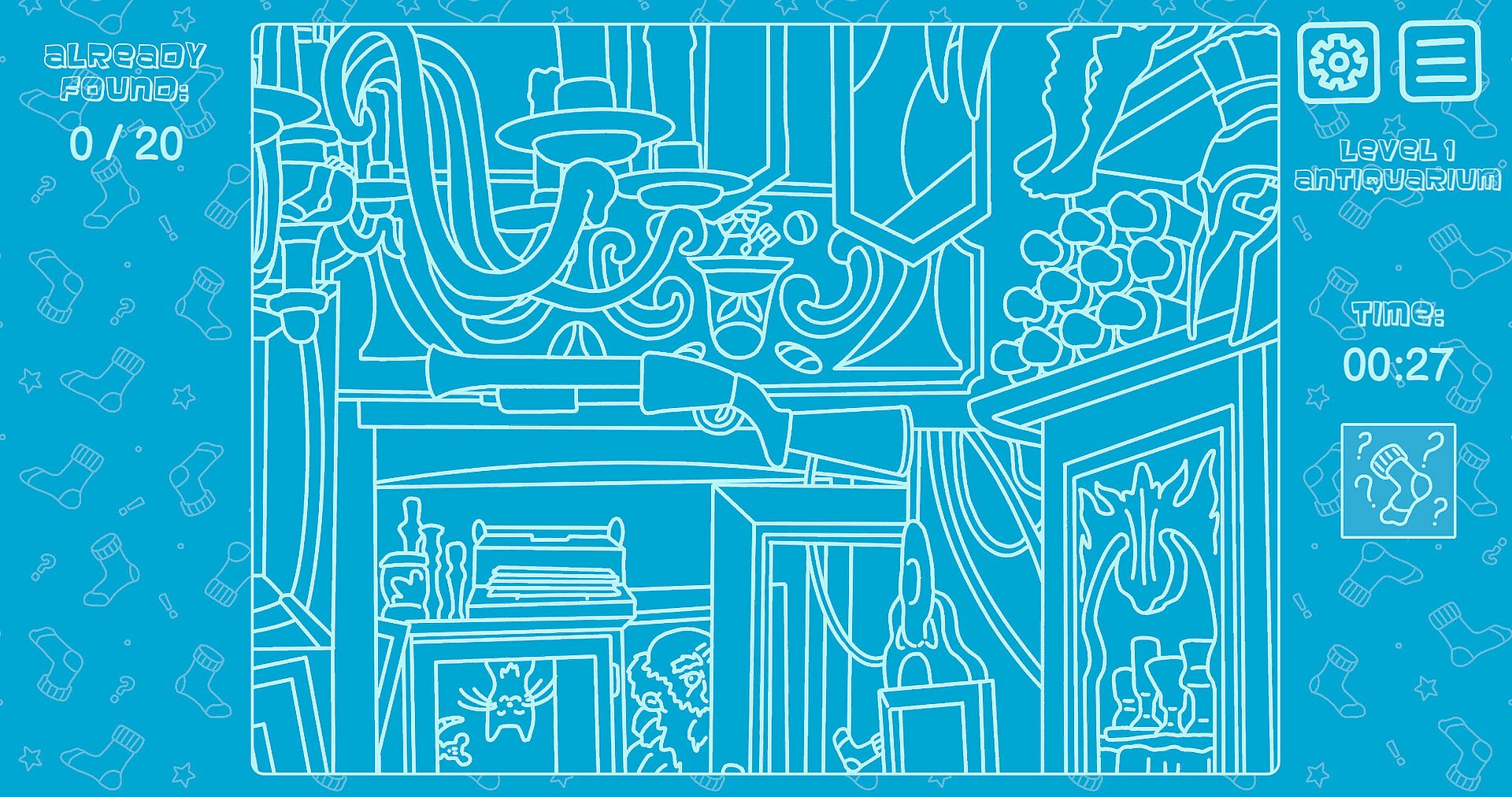 Have you ever struggled to find the second sock? That's because there's no socks! There's No Socks is a hidden object game with a selection of 4 locations and random socks to find for each of them.