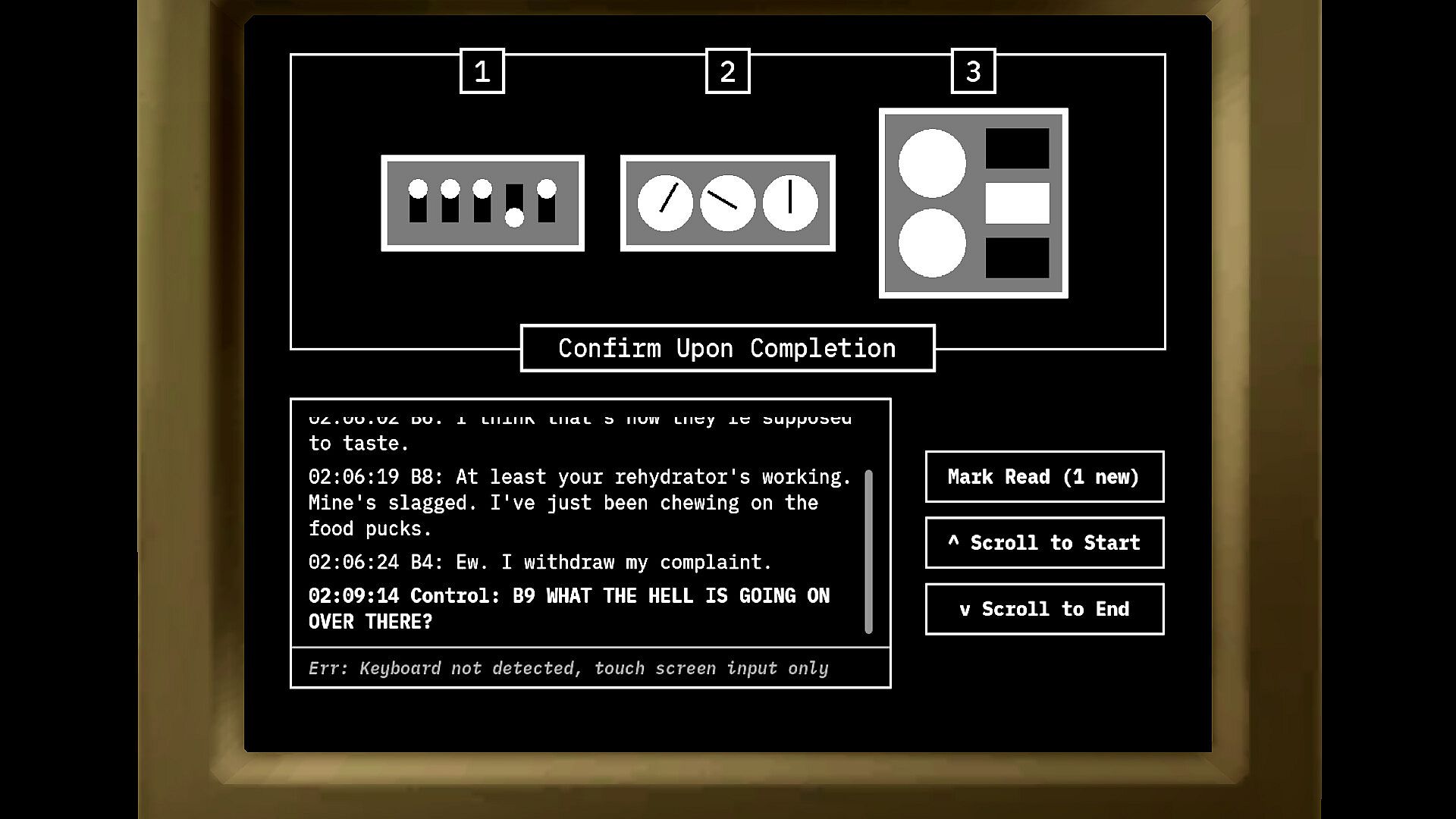 Your only contacts are confused chat messages from a handful of other souls in the same situation as you, and mysterious commands issued by the computer.