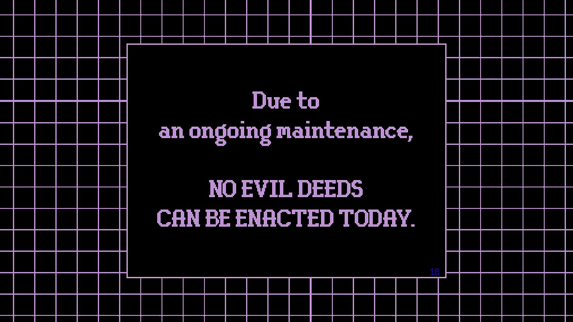 But, what's this? There's a maintenance? Because of it, he can't enact any evil deeds today?