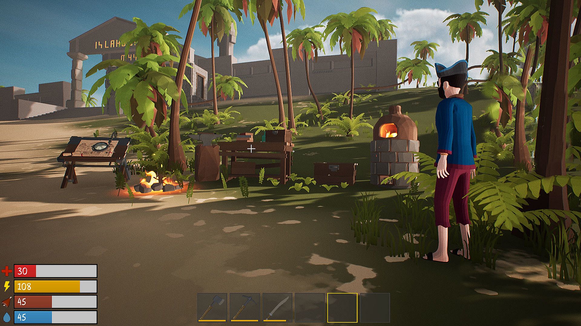 Gather resources and artifacts. Craft tools, equipment, weapons and environment.