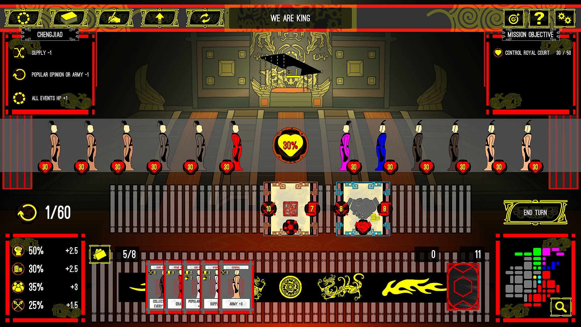 - Control Royal Court: Each royal court card also had its own unique effect, you only can use it when you had well-controlled the royal court.