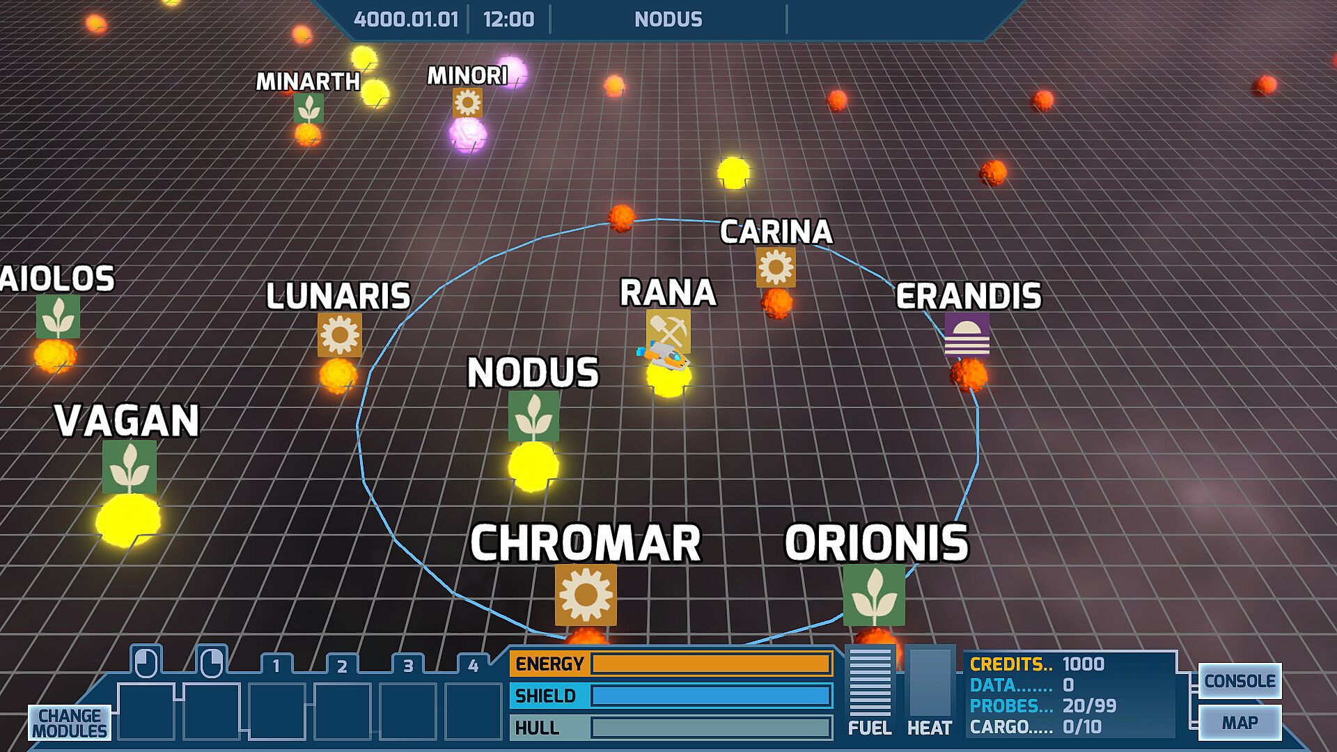 Every star has 1-3 planets to scan or land on and trade.