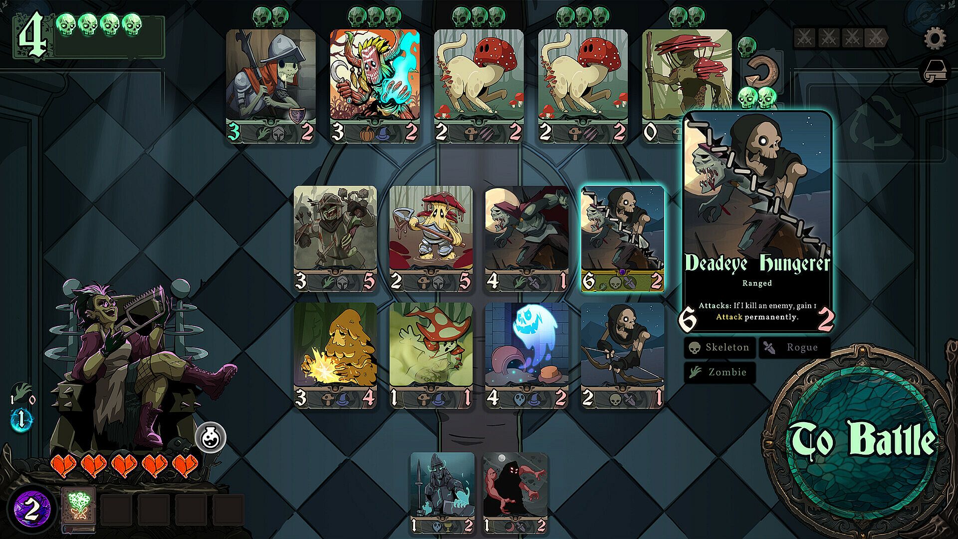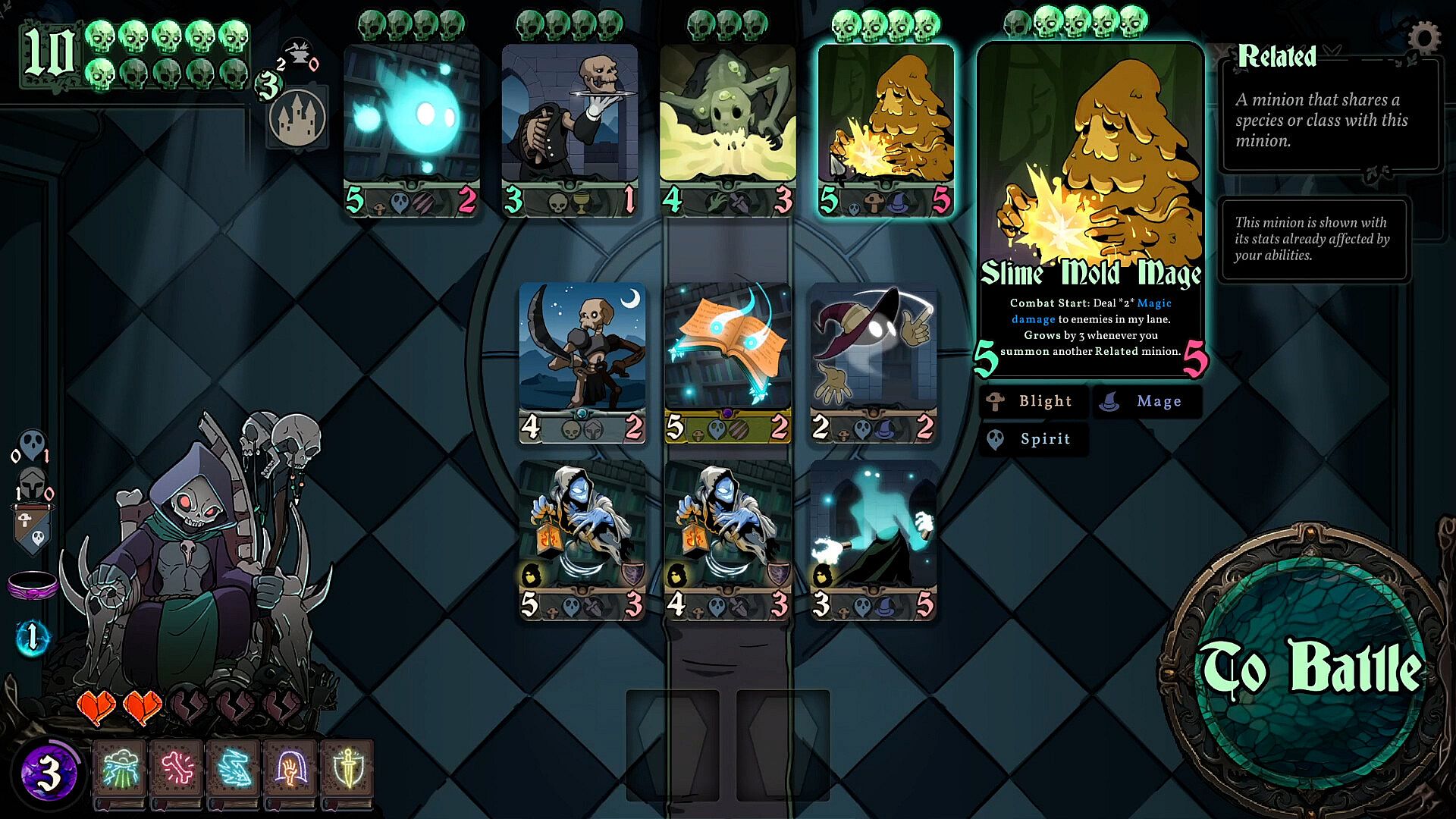 The bones of the fallen are yours to shape. Draft from over 50 unique minions, each with strengths to exploit and weaknesses to mend. Experiment with synergies, adapt your strategy, and let your forces march to war. Mortality is but a trivial concern.