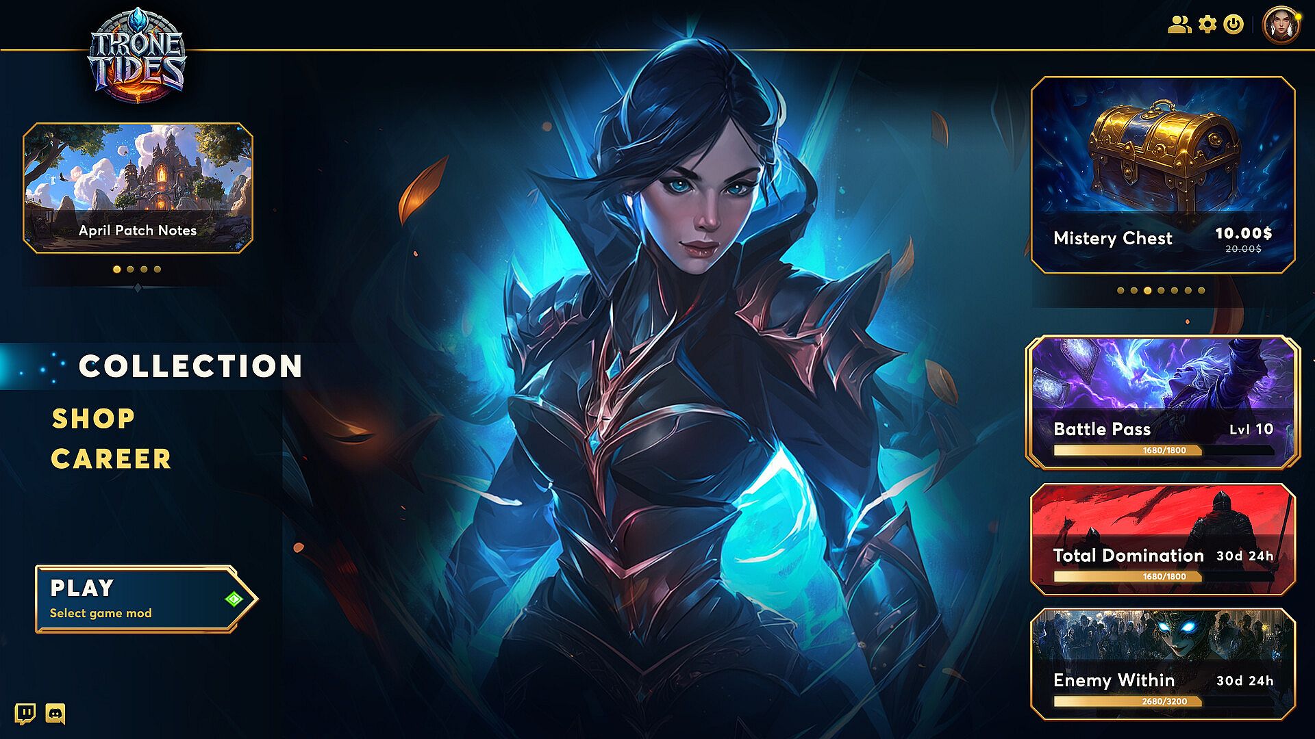 "Throne Tides" is a Multiplayer, Auto Chess, Real Time Strategy, Deck Building card game. It provides unique gameplay experience.
