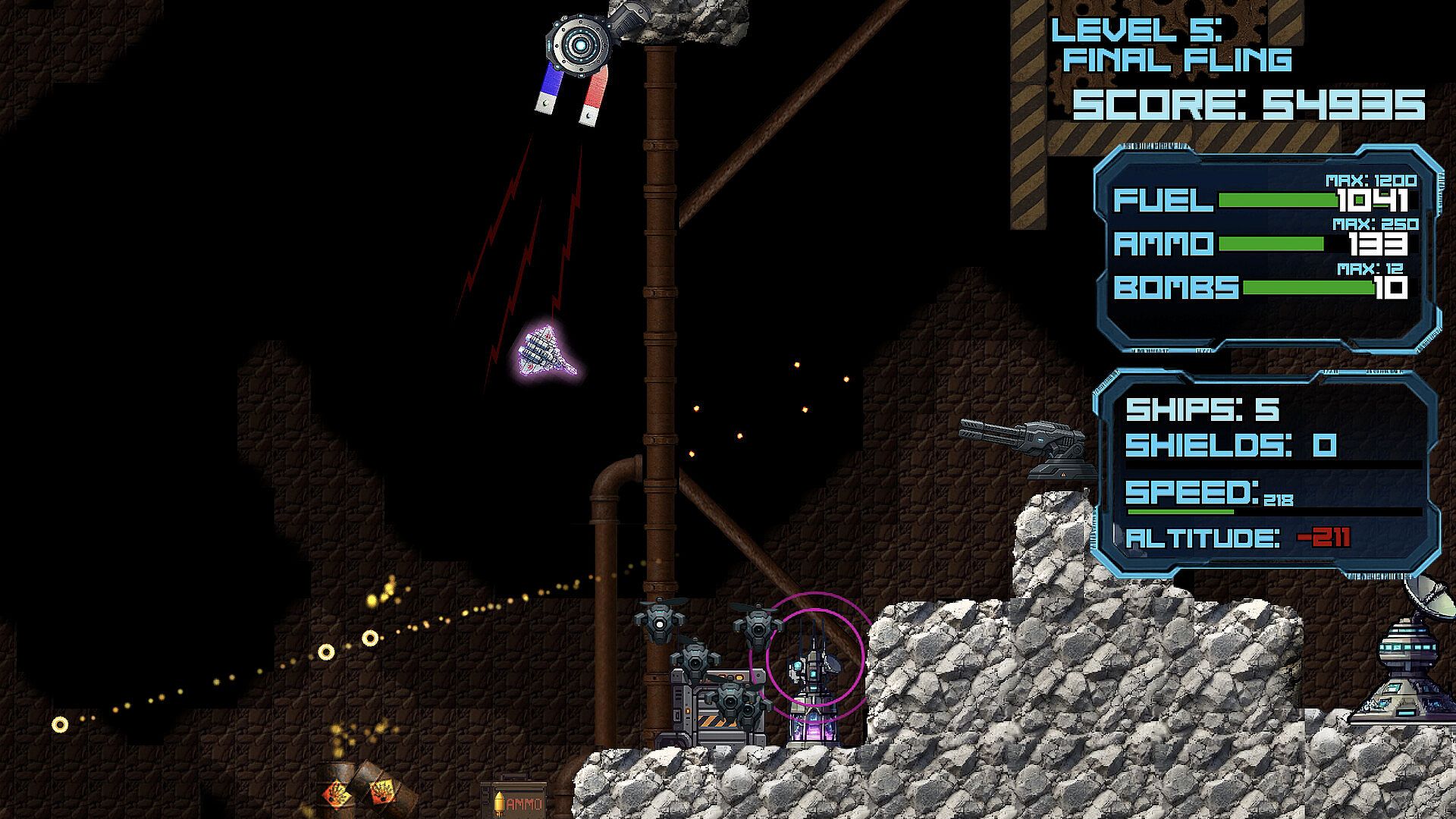 • Use your ships tractor beam to pick up fuel, ammo, bombs, shields and more