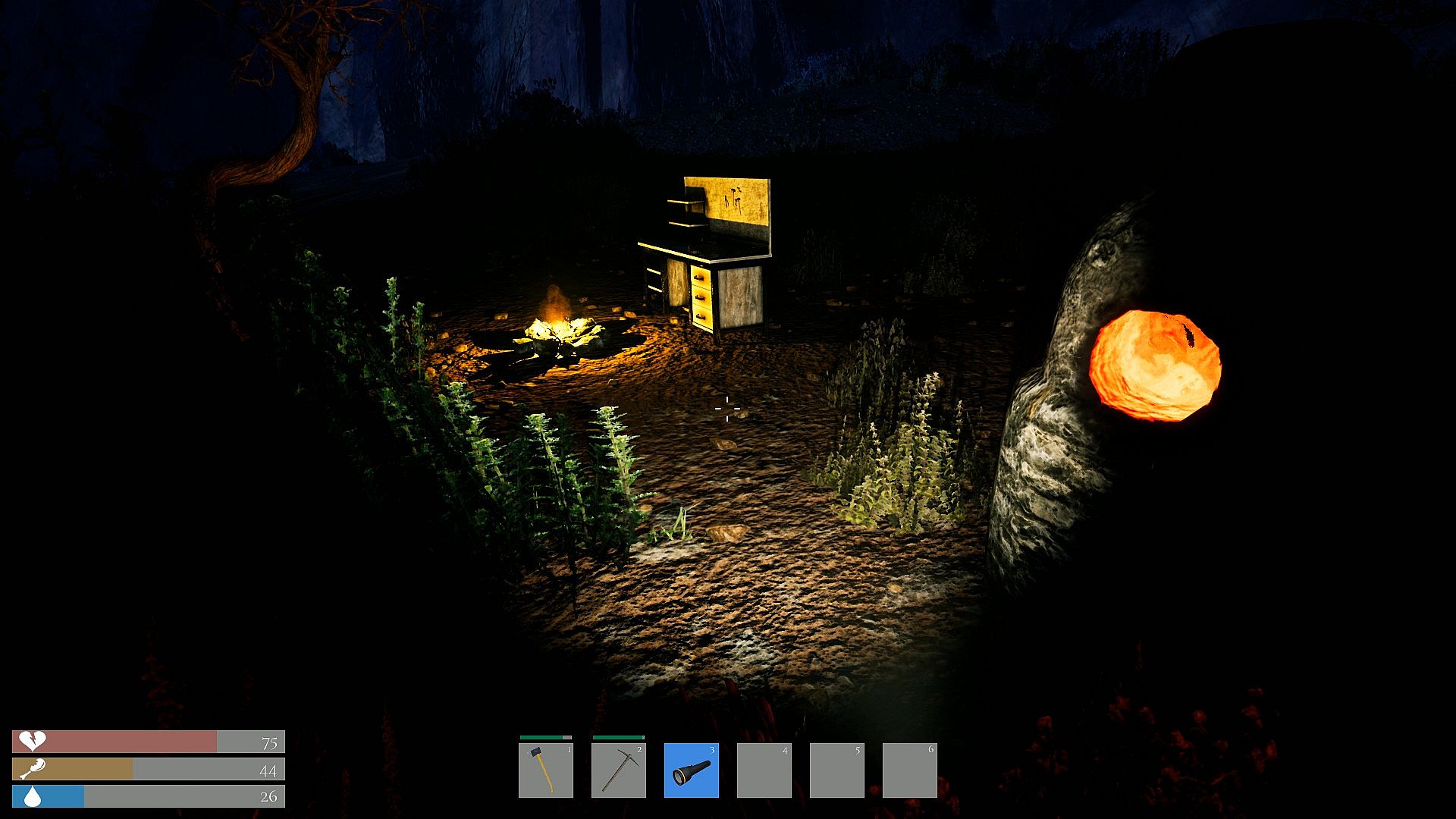 Through The Dust is a survival game with sandbox elements. Overcome a hot, dusty canyon to survive. Explore, craft, harvest resources, build simple buildings, hunting, and own the wild. From the begining you must go to end of deep canyon to find help and survive. But to achieve this you need to overcome difficulties of various types