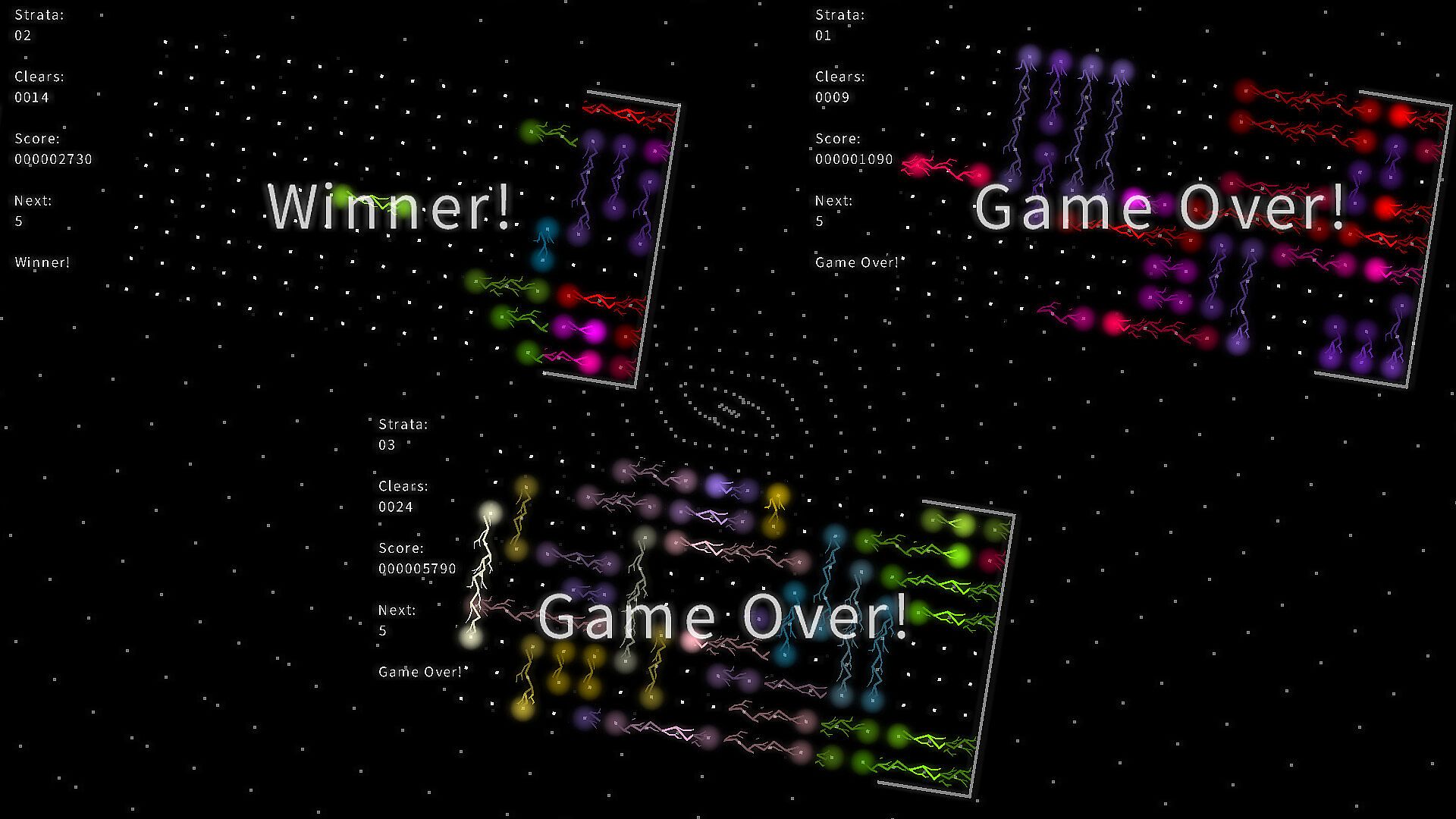 When a row is filled it will vanish and all lightning above it will fall.