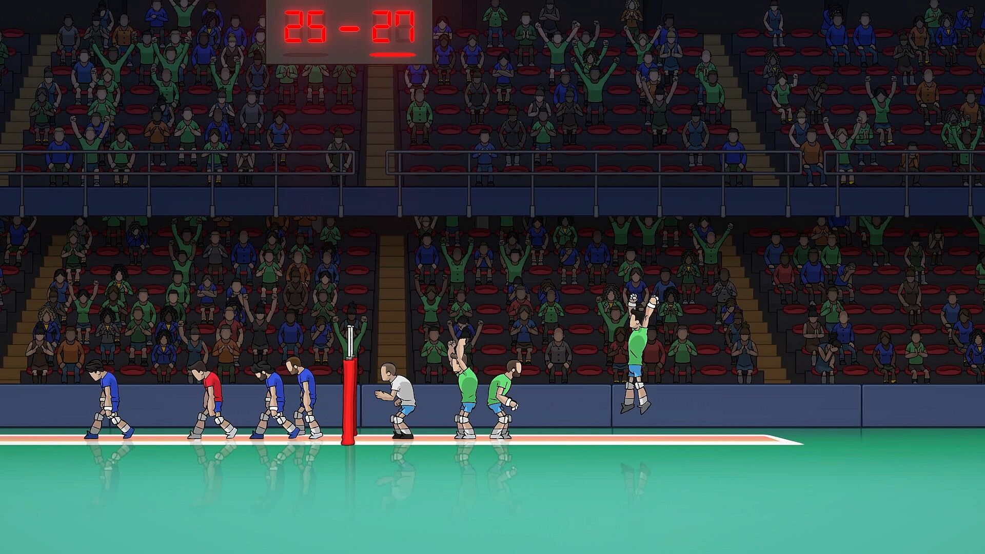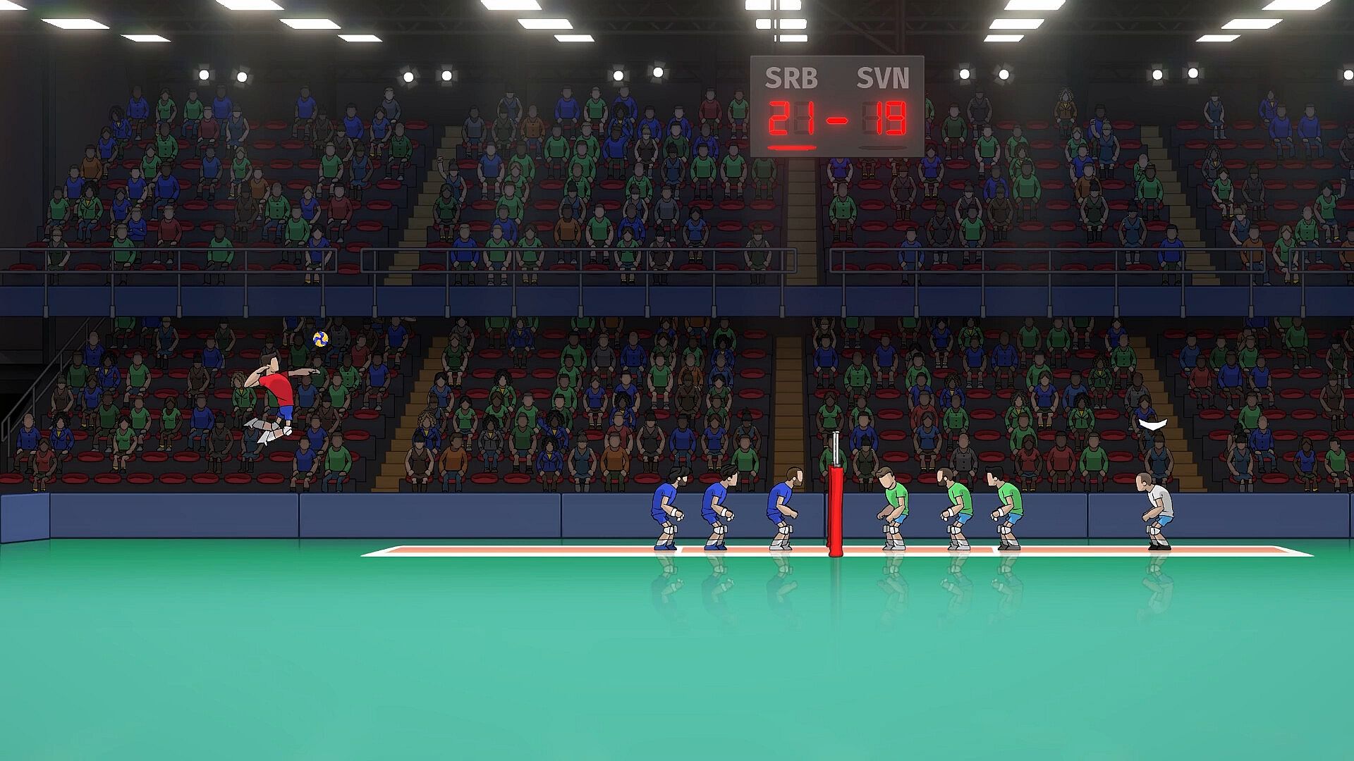 Thunder Spikes Volleyball is a 2D video game where you can perform every volleyball move: spikes, tips, blocks, serves, and spectacular diving saves.