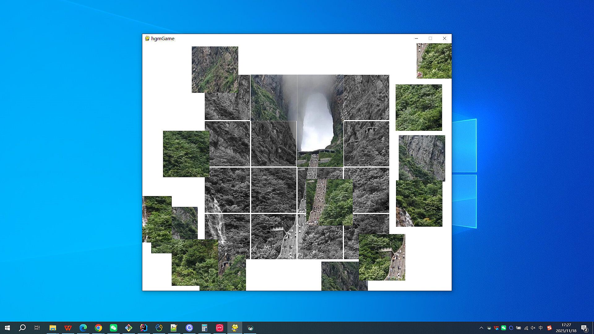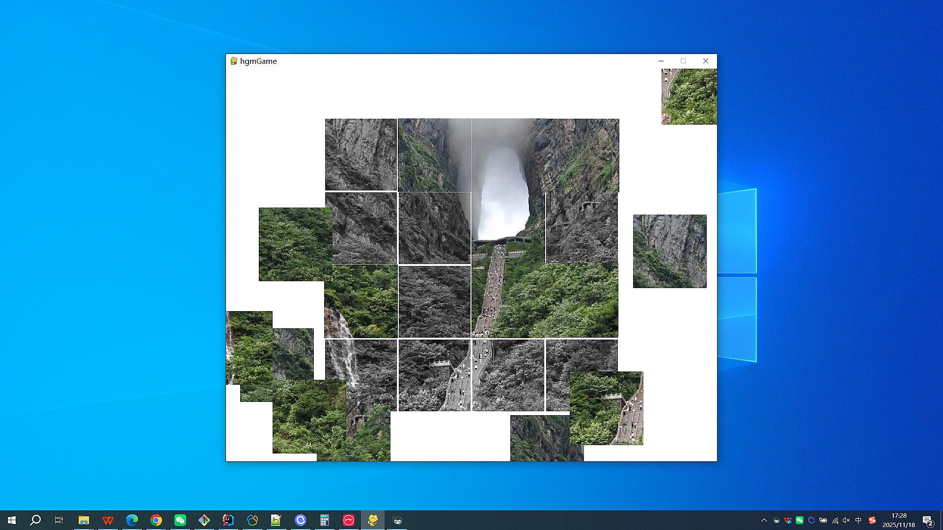 Click on 'start game', the image will be grayed out, and the colored parts will be randomly scrambled into 16 small fragments, scattered randomly on the screen