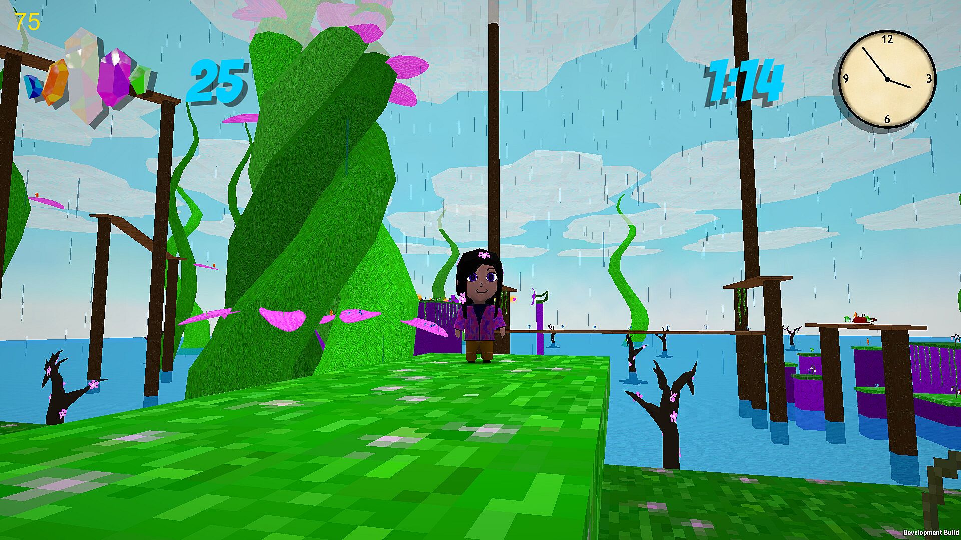 Tichi3D follows a light narrative, but is mostly focused on the platforming. Talk to NPC's for fun dialogue, then put your skills to the test in the platforming levels to unlock fun rewards