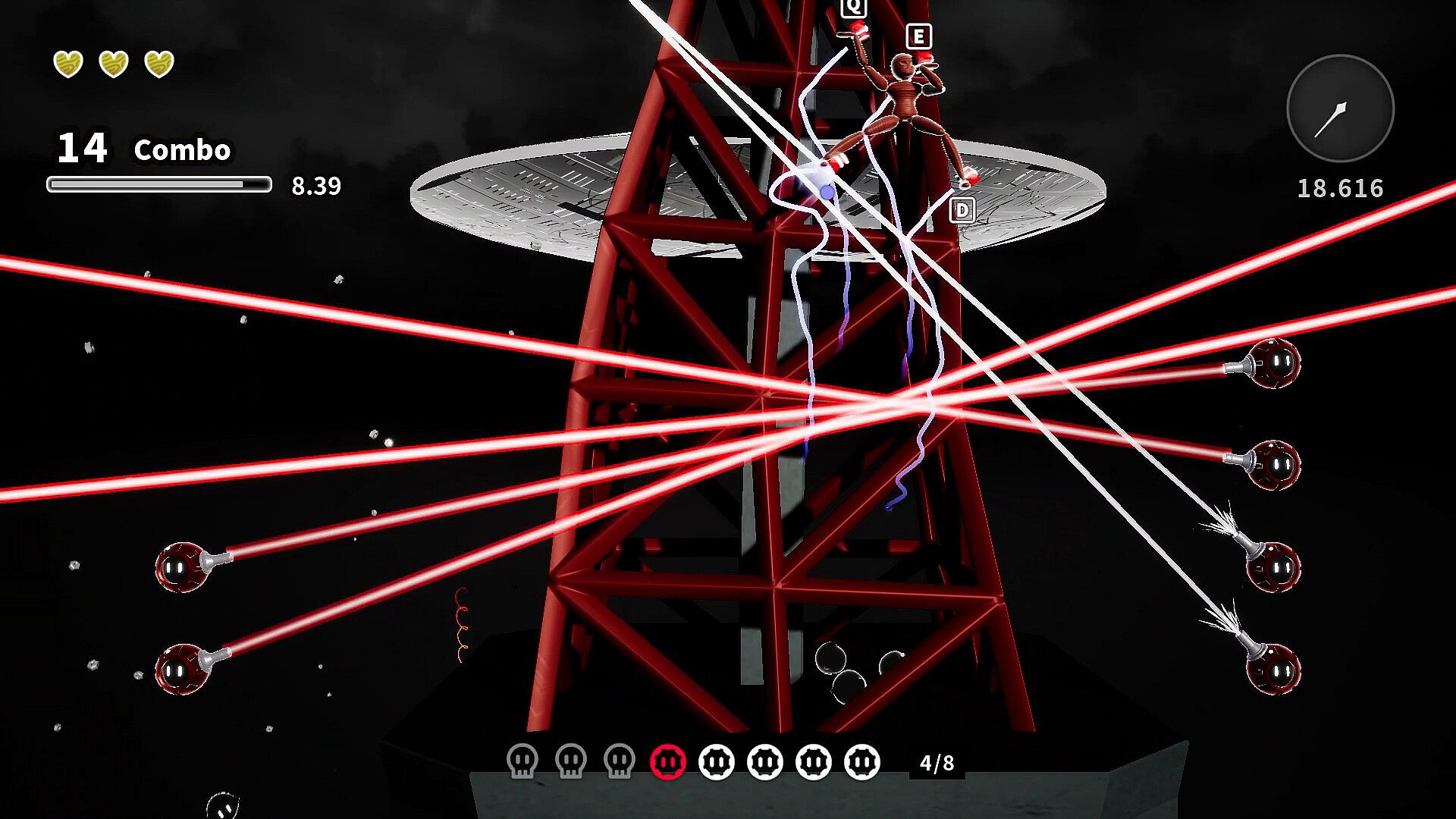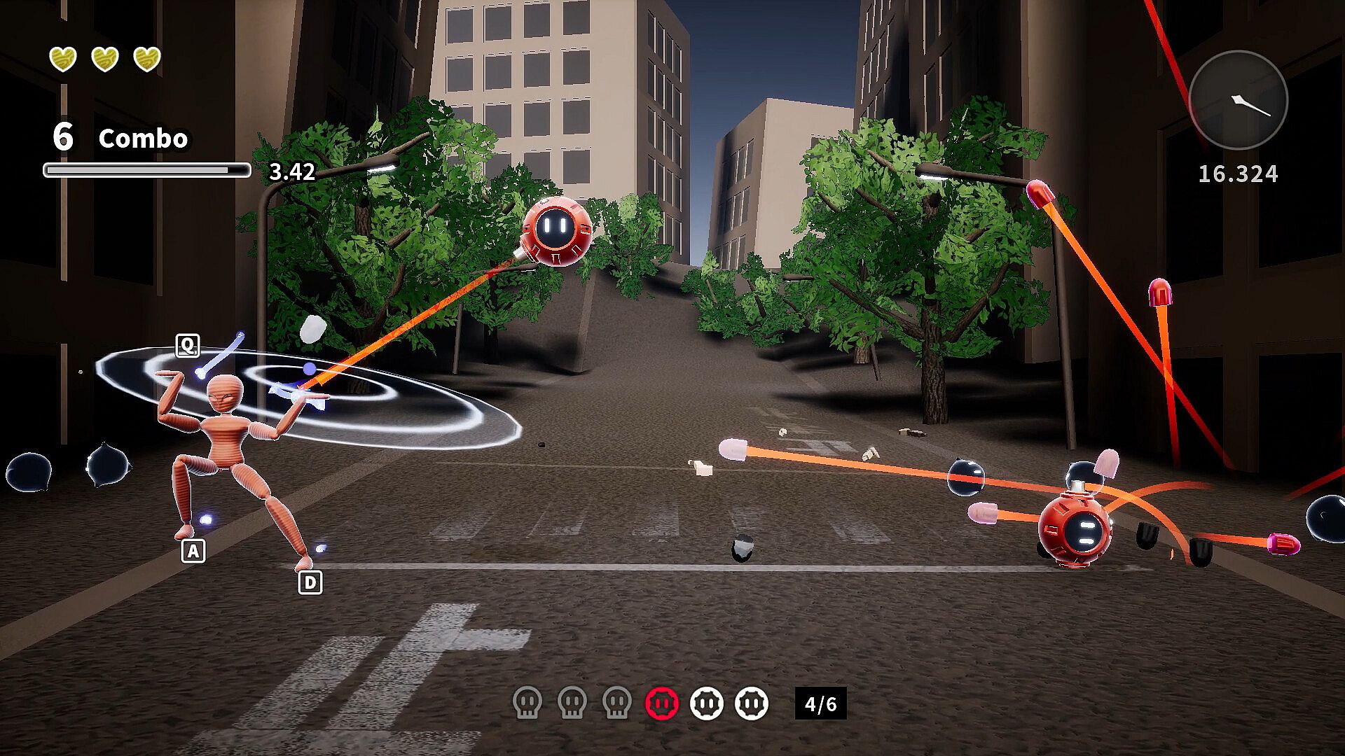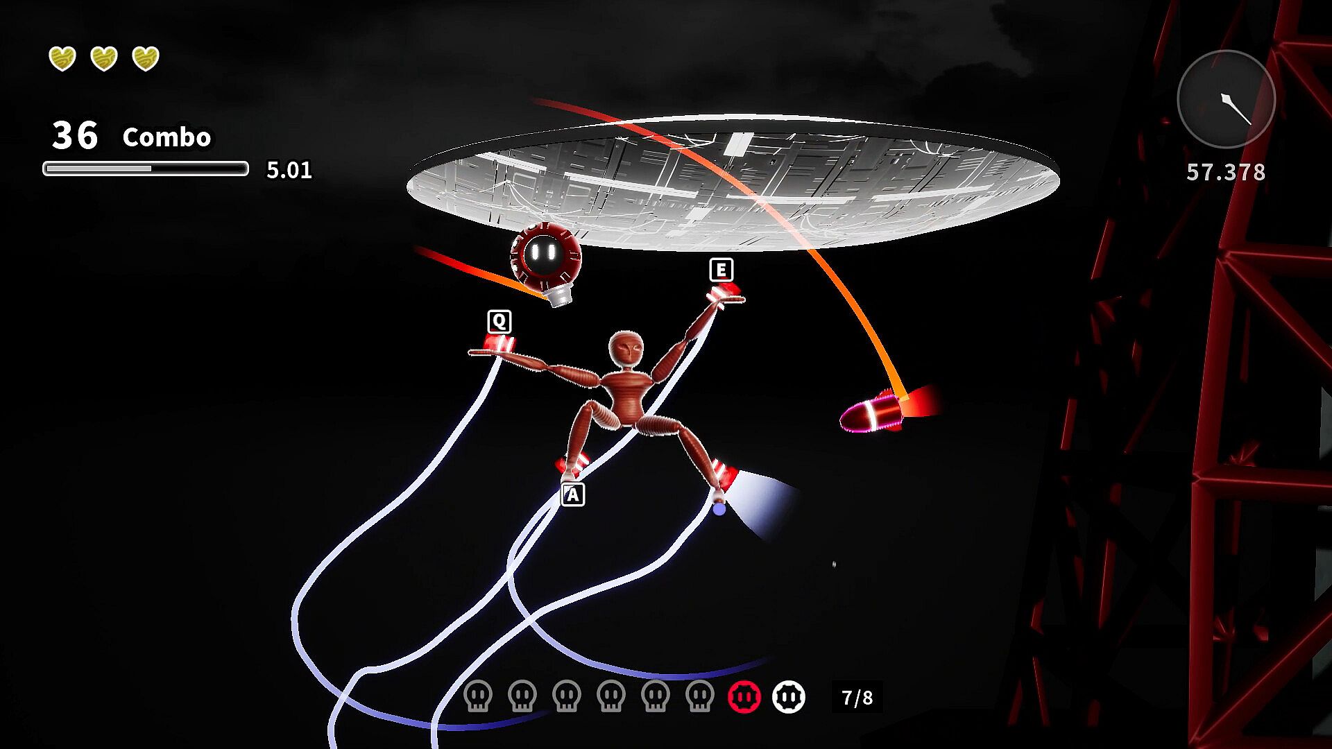 Tick Tack Puppet is a 2D action game featuring a strange control system in which the mouse is used to control limbs and time moves slowly while the mouse is not being used.