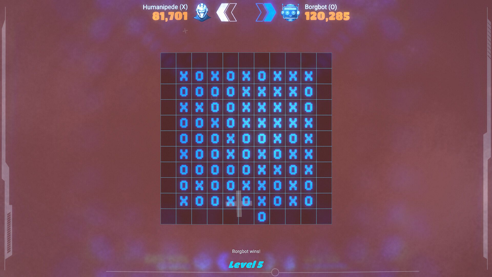 Match X's and O's in classic style on ever-increasing board sizes. force stalemates to level up and increase score multipliers, increasing the challenge while you try not to lose. This simple tic-tac-toe inspired game is surprisingly strategic.