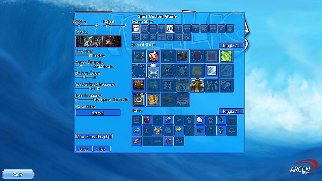 If this sounds simple, that's because it is -- you'll be lining up lengthy chains within minutes. But you'll be surprised how much brainpower it takes to set up combos of multiple chains, and the many brainteaser-style puzzles include some real stumpers. Tidalis has co-op and competitive multiplayer modes (both online and offline); action-oriented modes and timer-less brainteasers; a lengthy, casual-friendly adventure mode; twenty unique game modes providing innumerable twists to the basic gameplay; dozens of special blocks and items; and over fifty minutes of beautiful music to go with the painterly art.