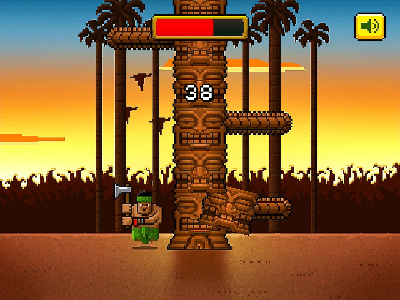 Harness the legendary powers of the Tiki Man by chopping down the world's tallest tiki. Chop the tiki faces and avoid the hazardous tiki arms. Sounds easy? Think again my friend. 4 luscious tropical environments and 16 Tiki Men to unlock. Master your tiki chopping skills to earn high scores. Take the axe and chop the tiki as fast a you can!