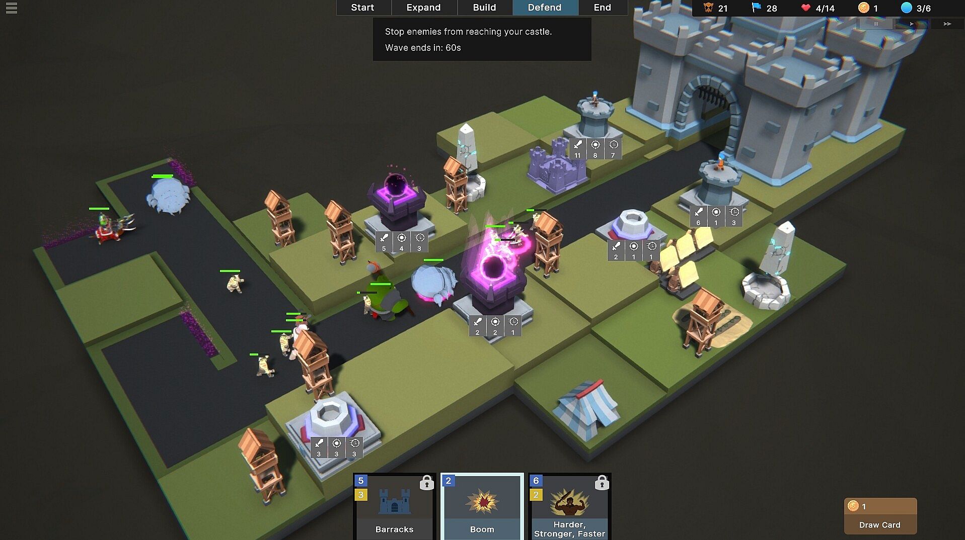 TileDeck TD mixes Tower Defense and DeckBuilding with elements of Roguelike .