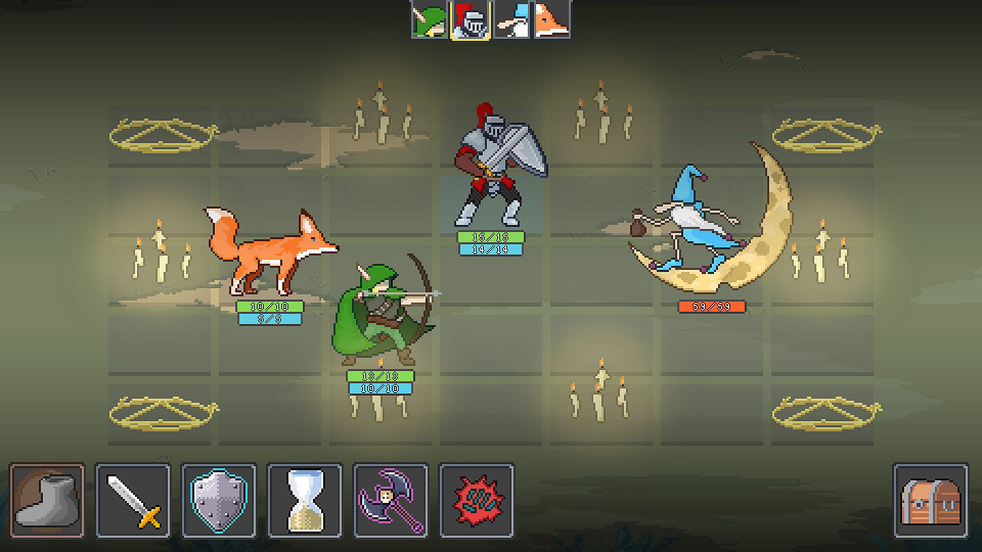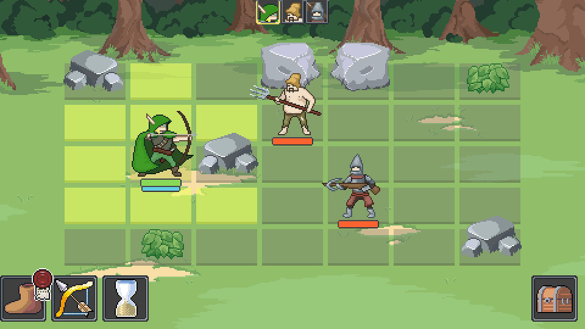 Pick your characters of choice and advance through procedurally generated kingdom maps and slay enemies in a tactical combat game that plays like chess! There are loads of interactions to explore and combos to try on the board!