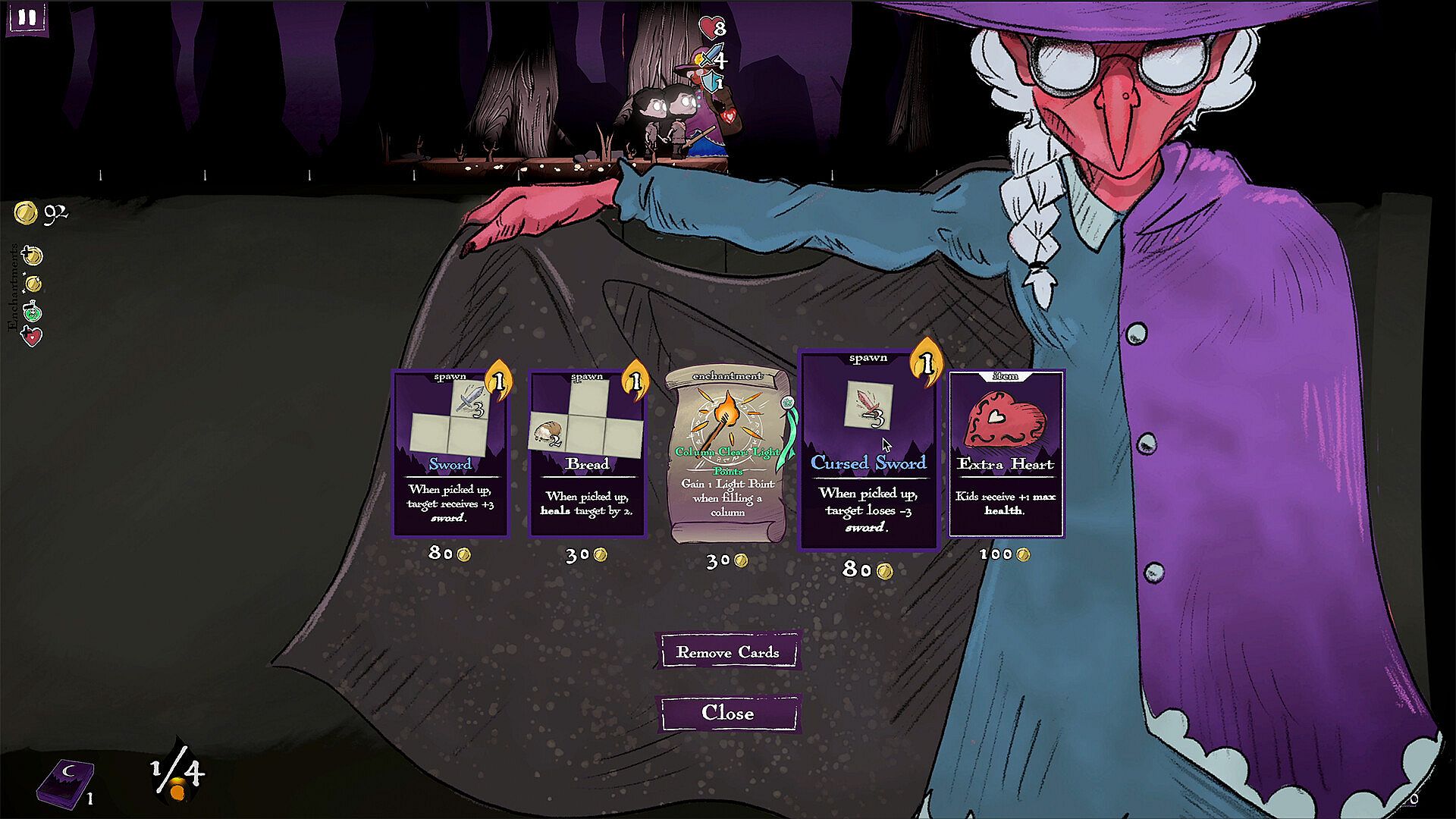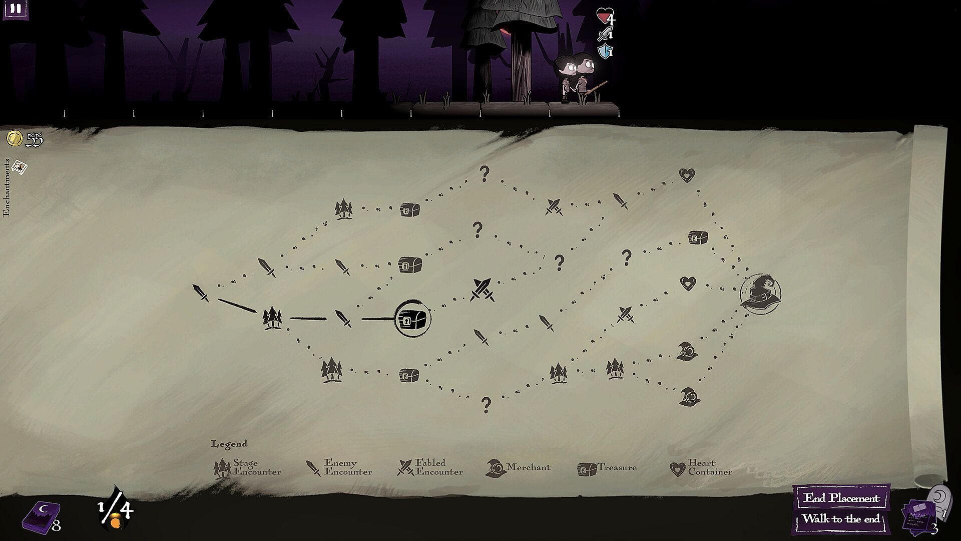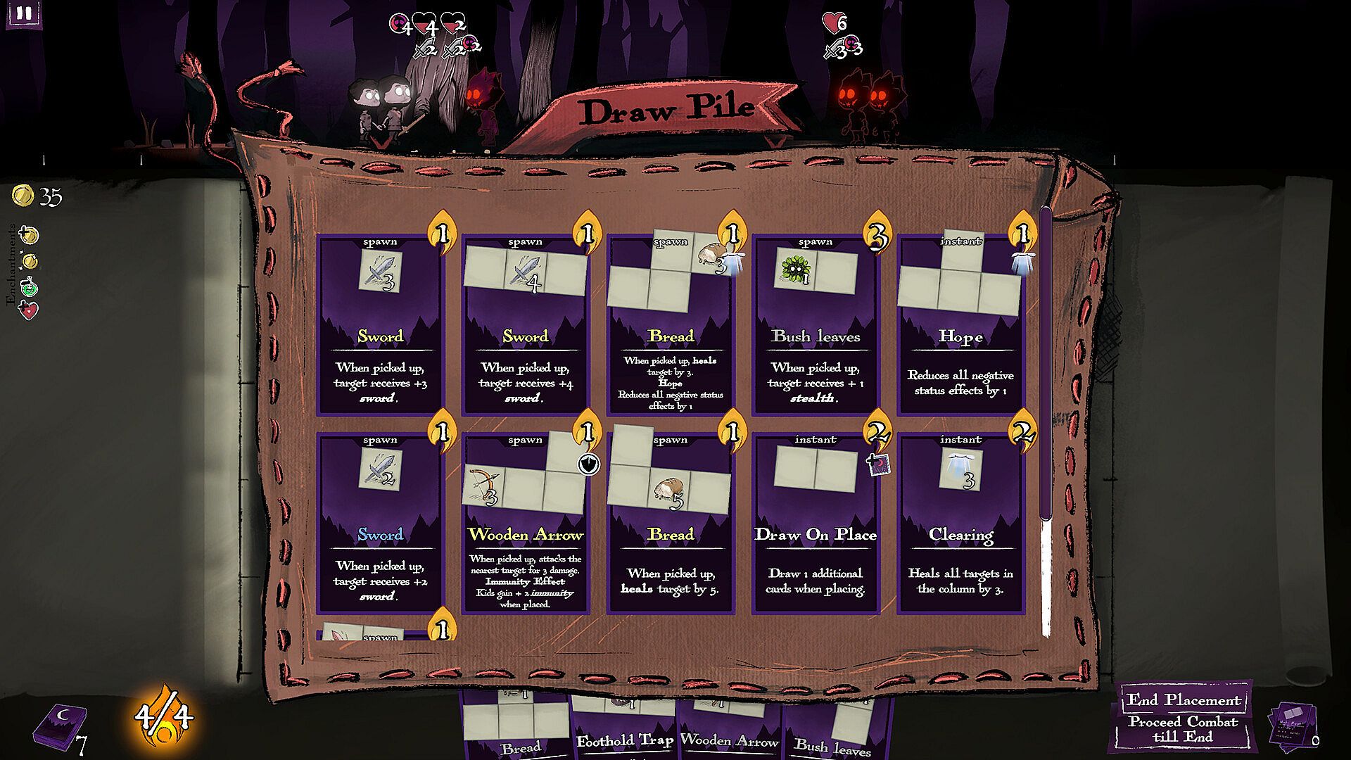 As you progress you upgrade your deck with powerful new tiles and gain permanent benefits through enchantments to overcome tougher challenges and ensure the kids escape from the forest. Tiles of Grimmwoods seamlessly blends exploration, strategic tile placement, and deck-building into a challenging and gloomy roguelike experience.