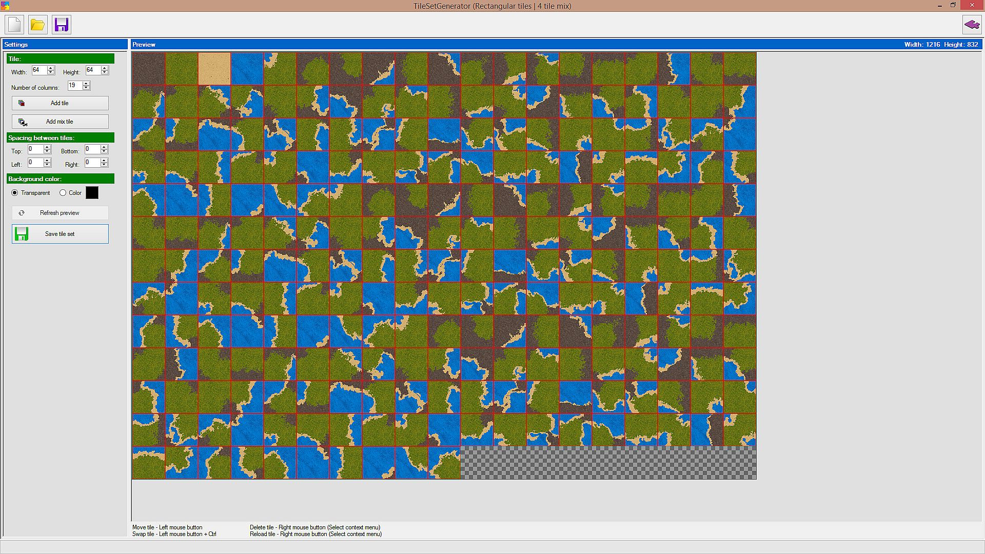 • Saving the finished tileset to .png or .bmp