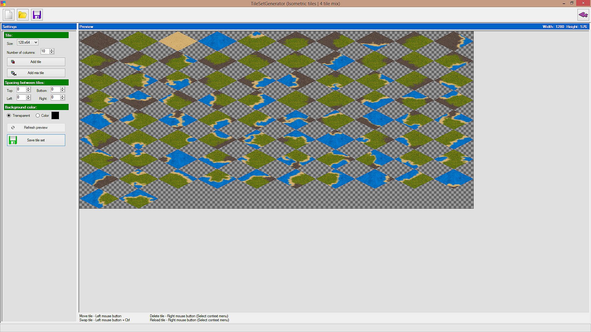 • Change the distance between tiles in the finished tileset